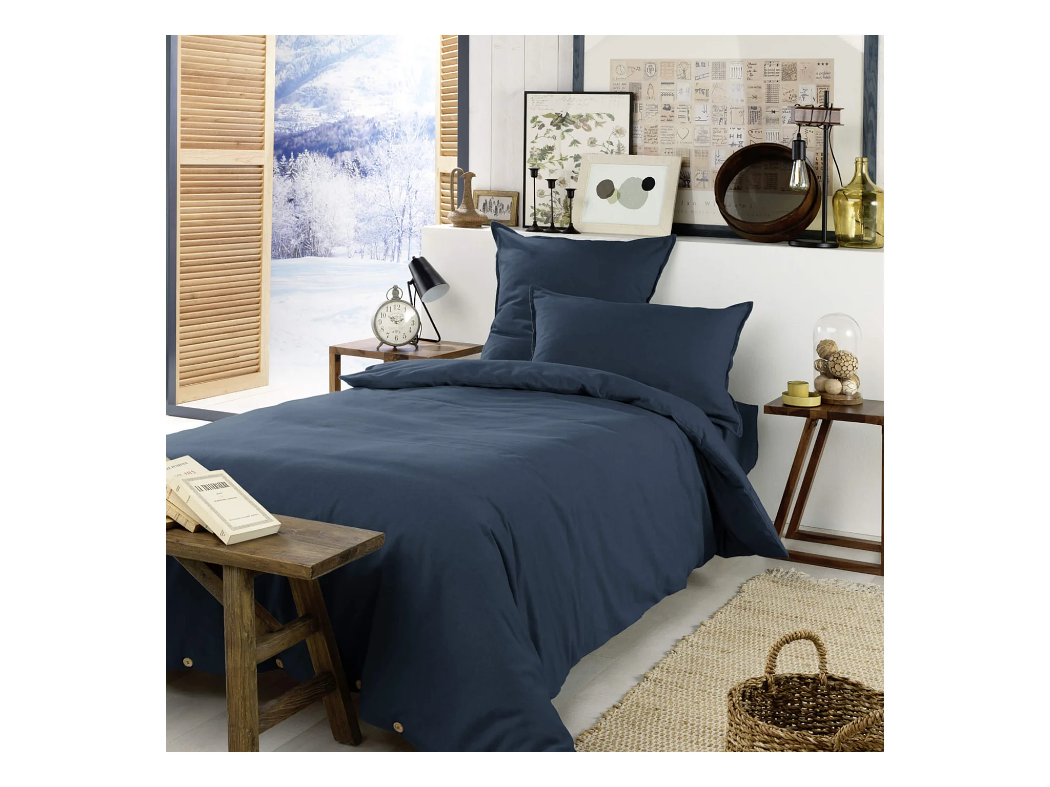 Housse de couette en coton 57 fils unie bleu 240x220cm
