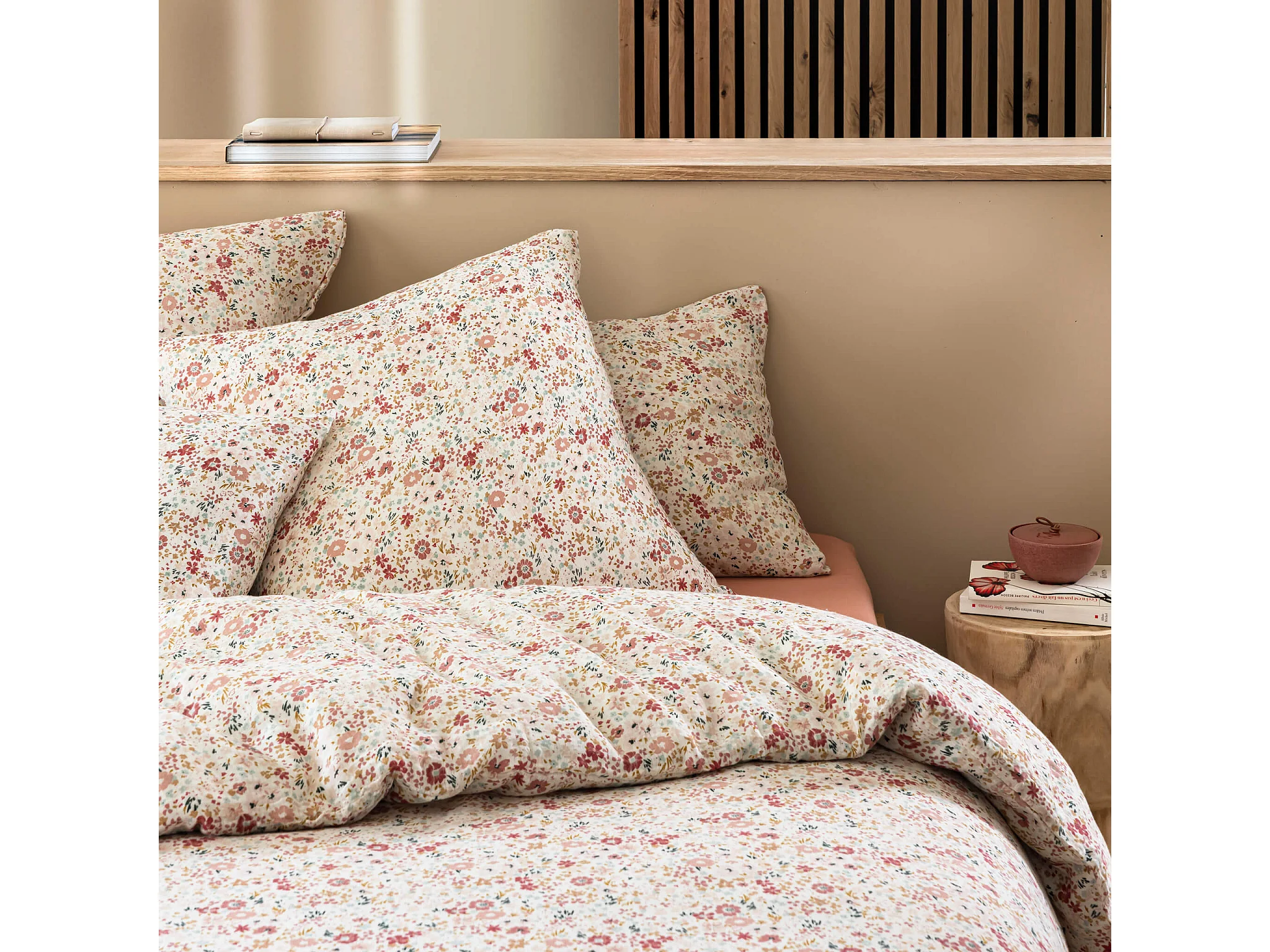 Housse de couette gaze de coton imprimé floral rose 260x240