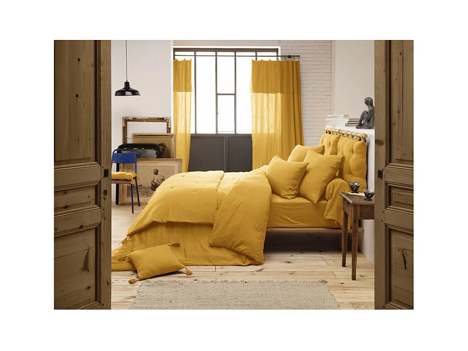Housse de couette double gaze de coton jaune safran 260x240 cm