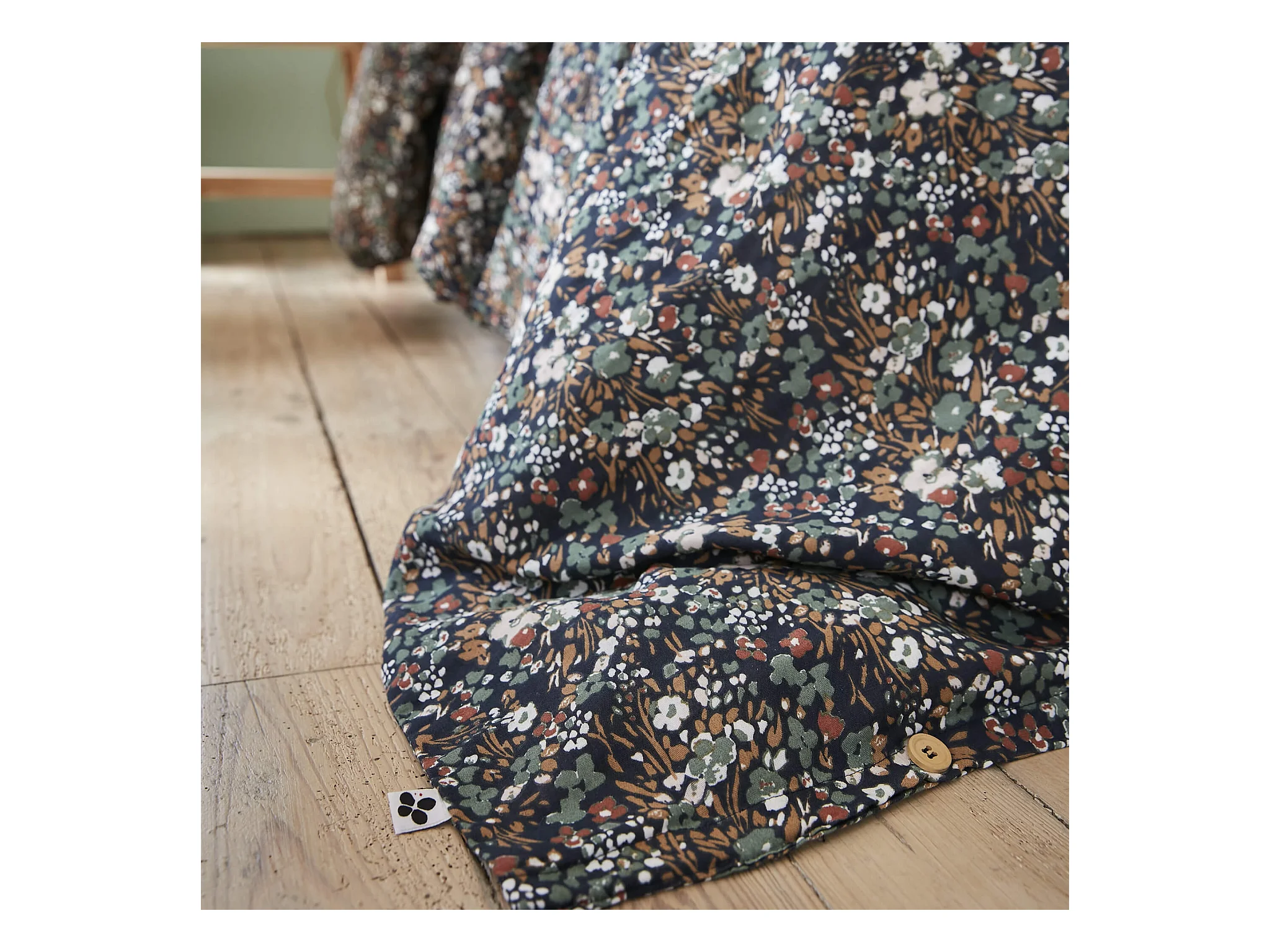 Housse de couette gaze de coton imprimé floral 240x220 bleu marine