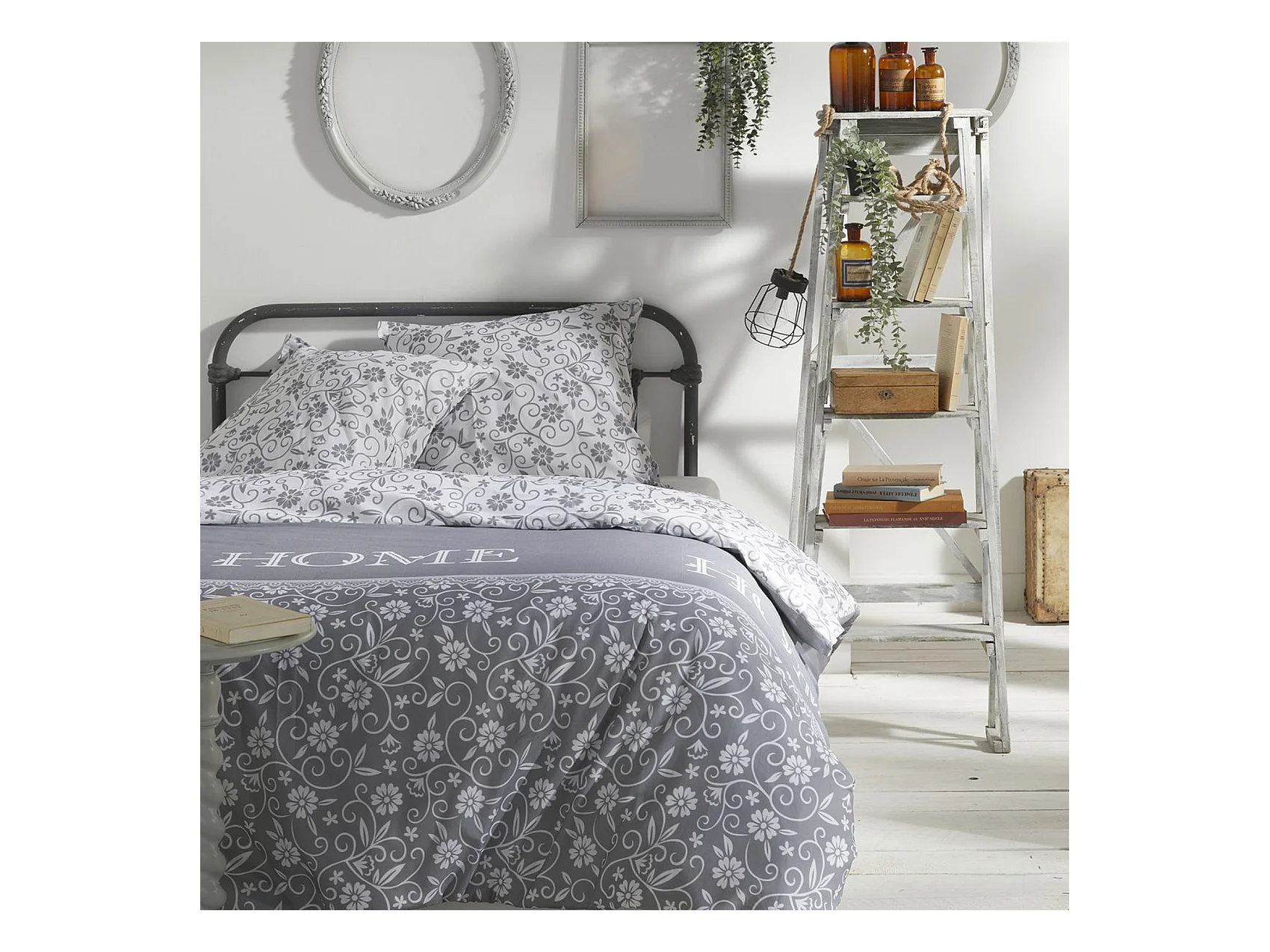 Housse de couette imprimée + 2 quadrants assortis, 100% coton. M/HomeGris.02 260x240cm