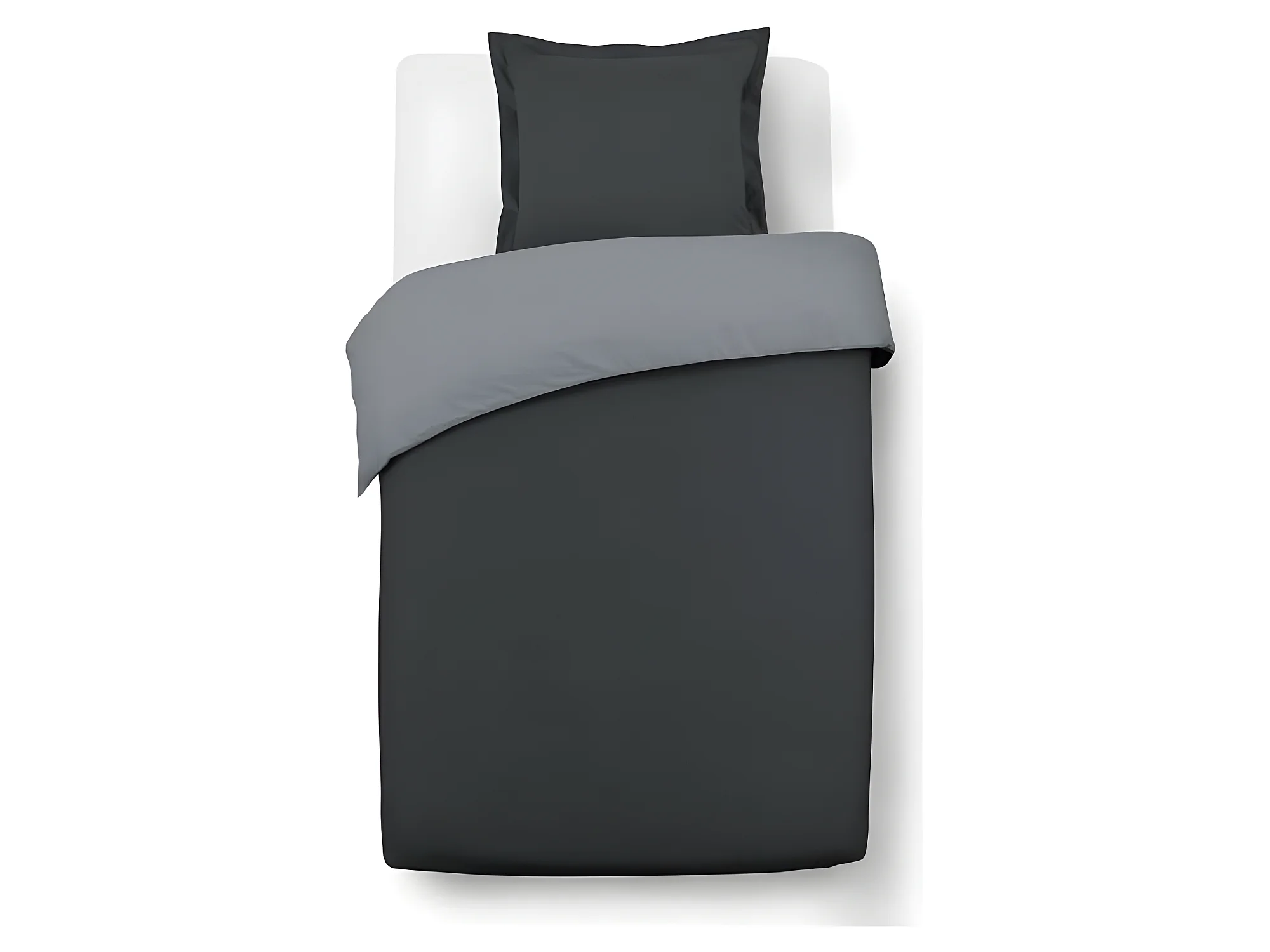 Housse de couette Réversible 140x200cm avec 1 taie 65x65cm - Anthracite/gris - 100% coton