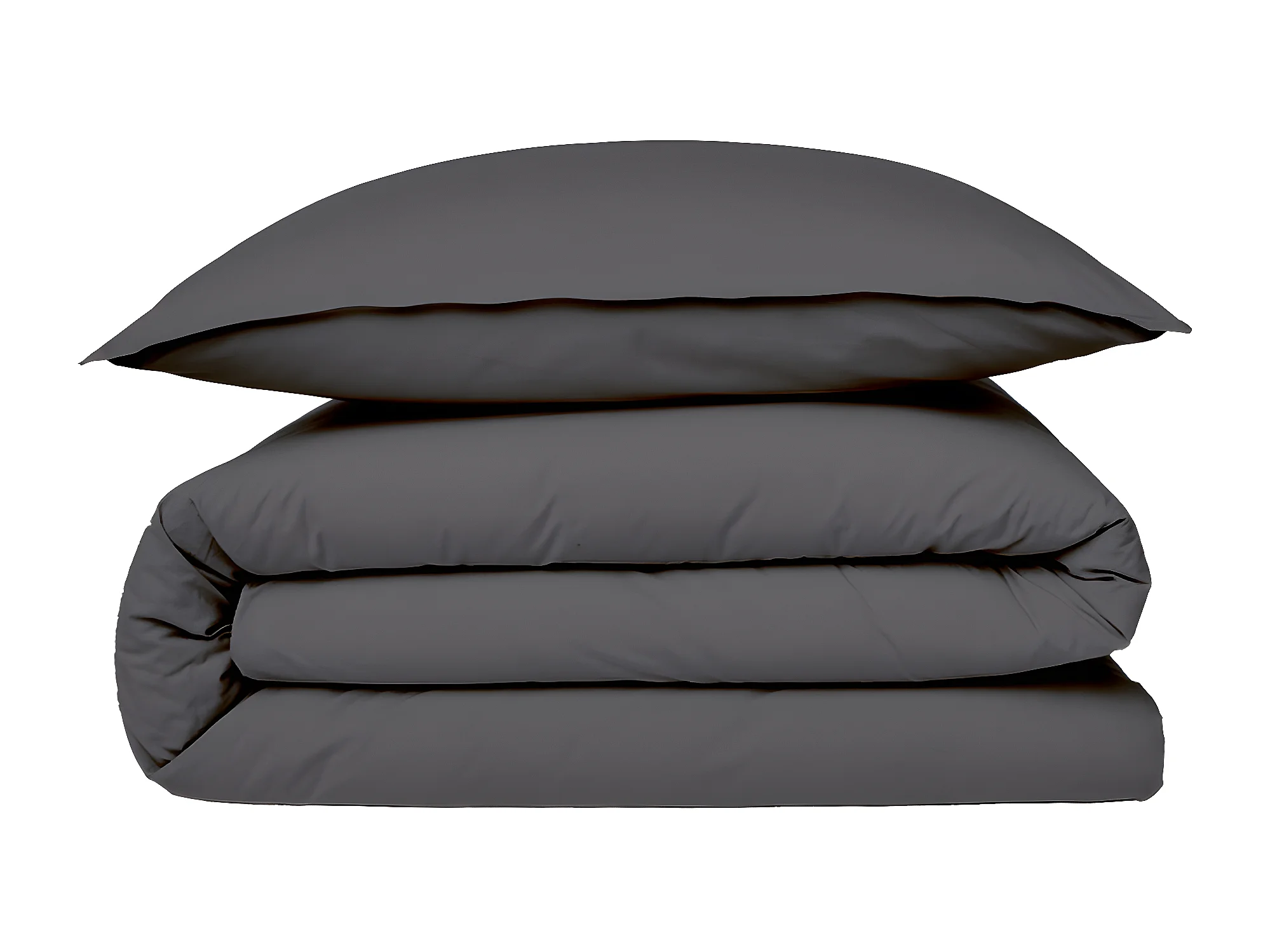 Housse de couette en coton 57 fils unie zinc 140x200cm
