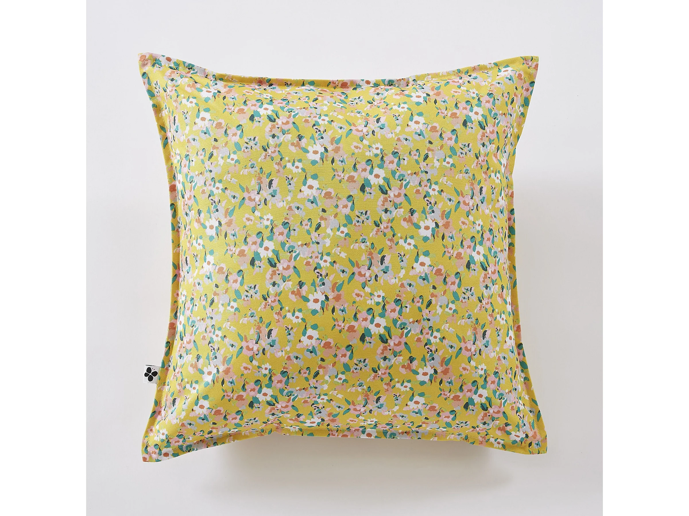 Coussin décoratif déhoussable en coton motifs brodés Ocre 45 x 45 cm