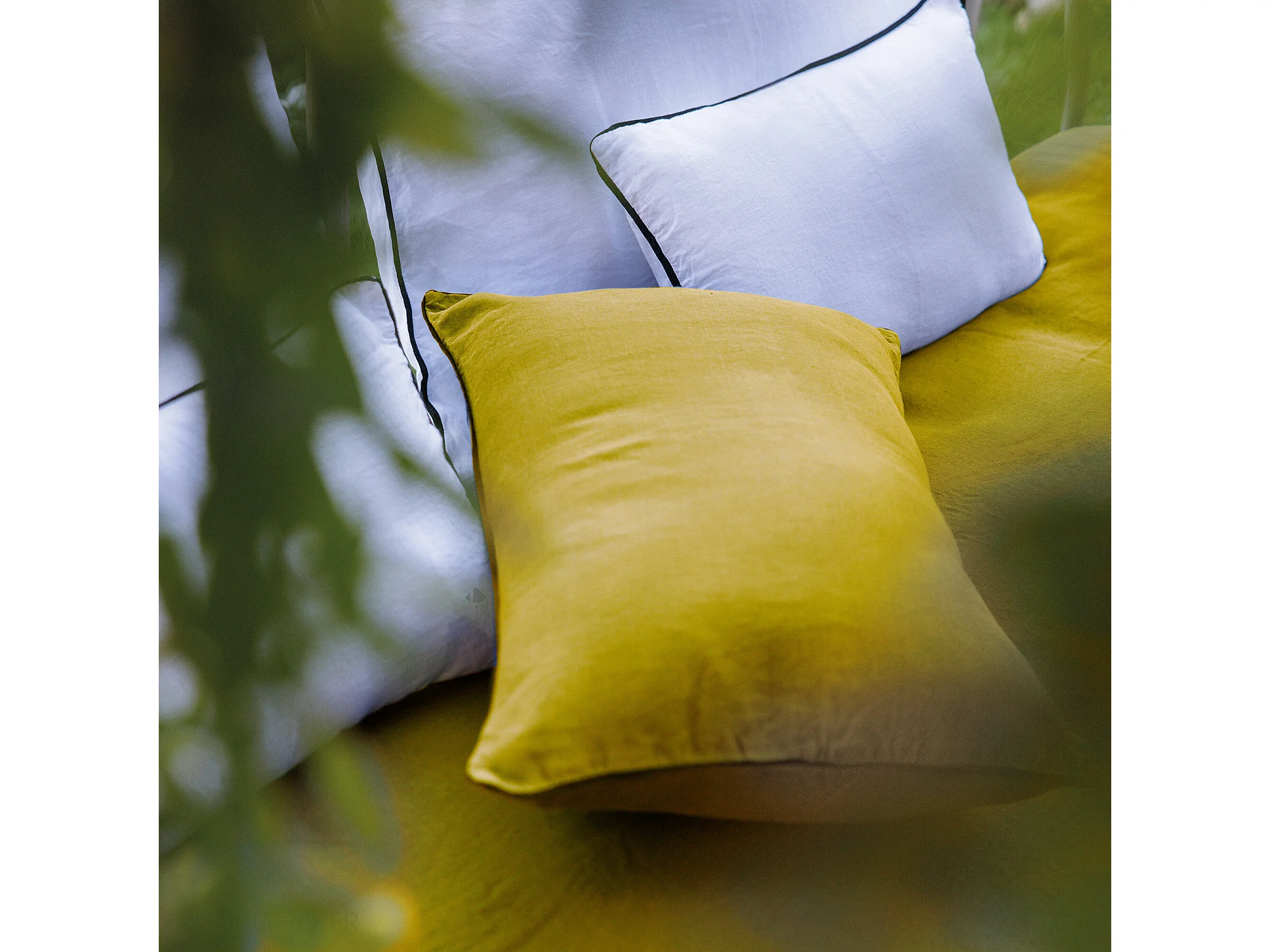 Housse de coussin PRELUDE 80x80 cm lin et coton lavé jaune Curry