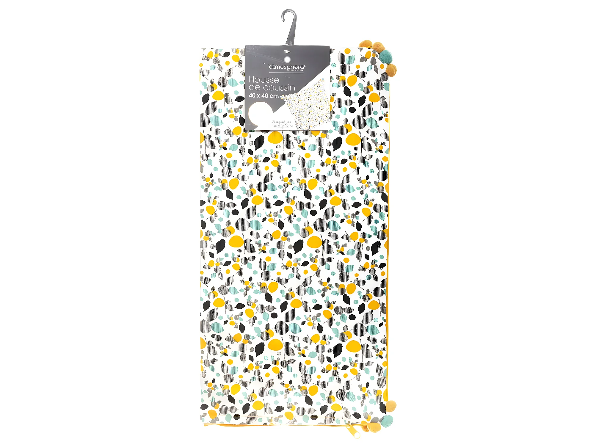 Housse de Coussin Tropiques et Pompons 40 x 40 cm