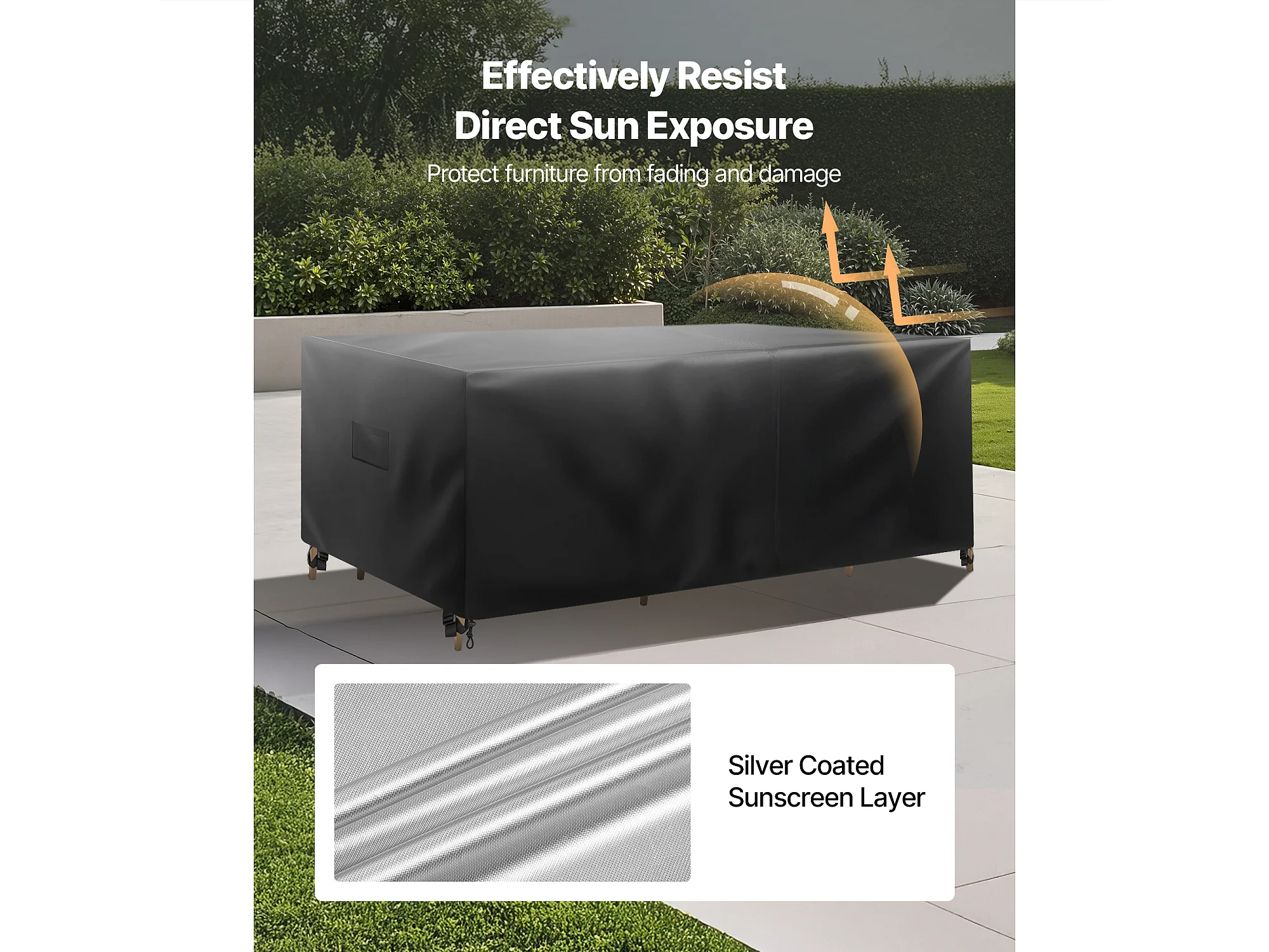 Housse de Meubles de Jardin SucceBuy, 279x213x71 cm, Bâche de Protection pour Mobiliers d’Extérieur en 420D Imperméable et Résistante, Toutes Saisons, Noir