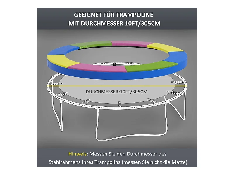Housse de protection pour trampoline, résistante aux intempéries et aux UV, plastique 500D, multicolore (305x305x30cm)