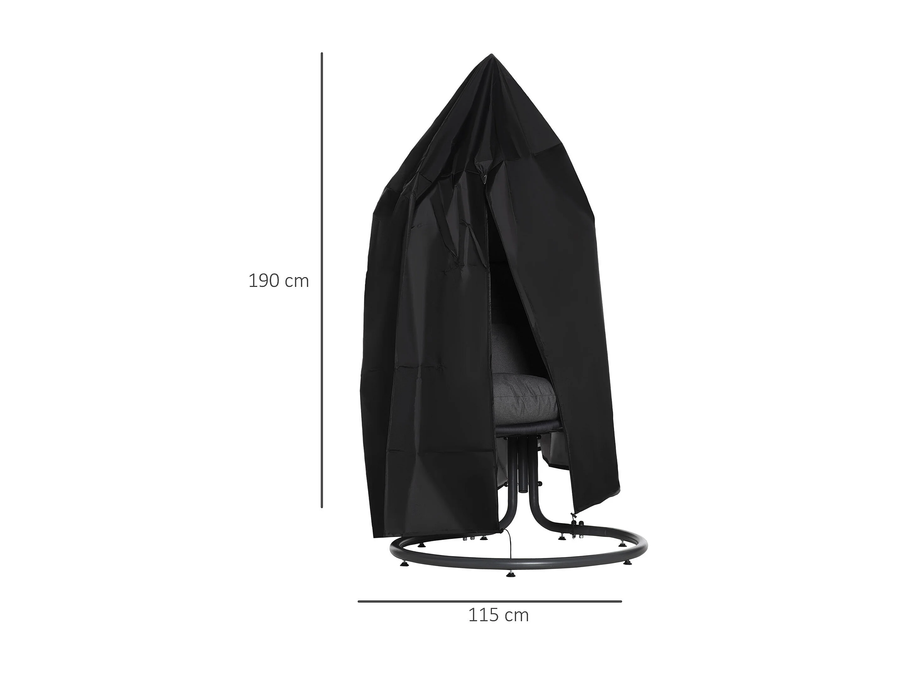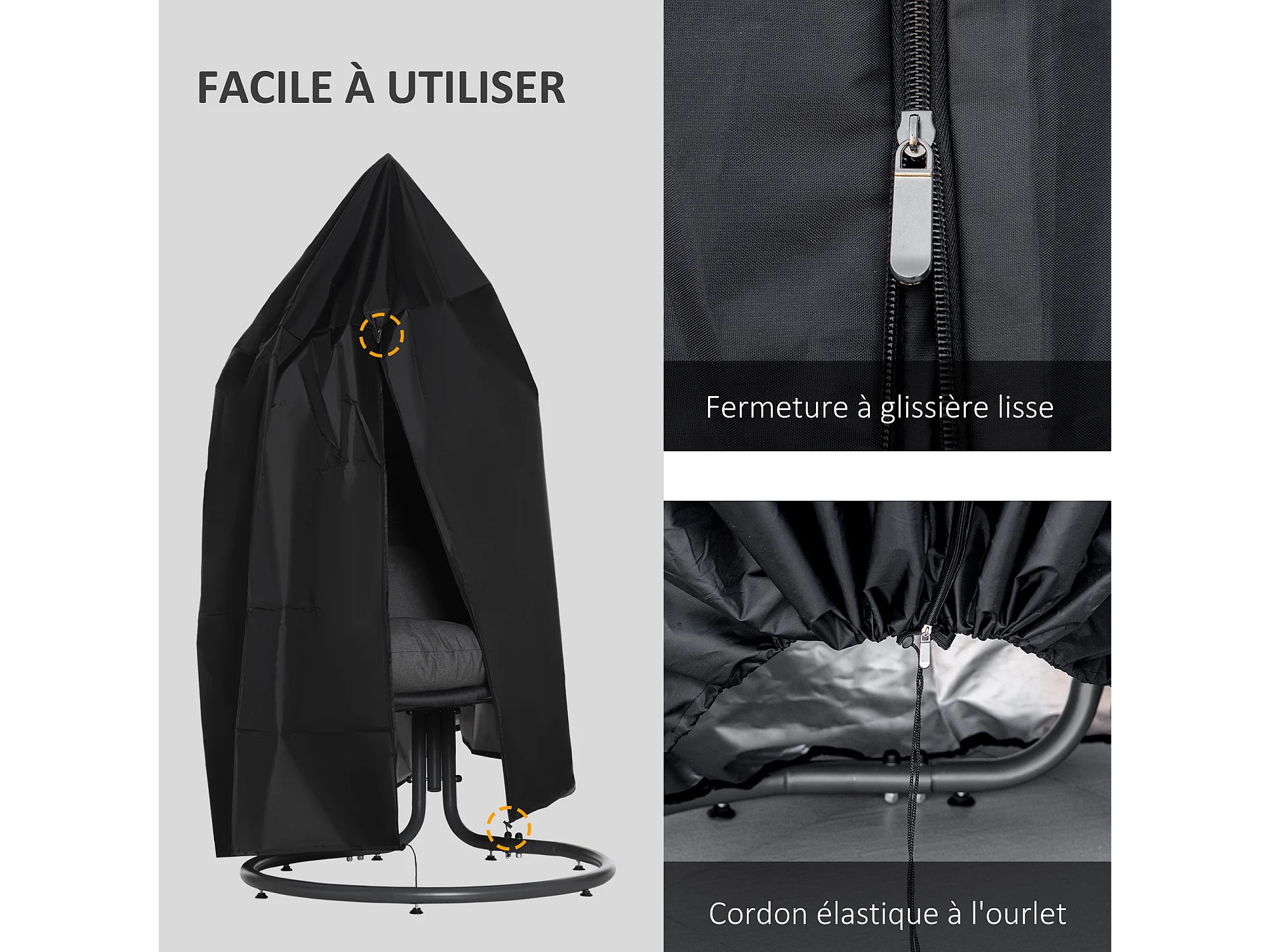 Housse fauteuil suspendu zippée cordon de serrage - dia. 115 x 190H cm - Oxford 210D noir