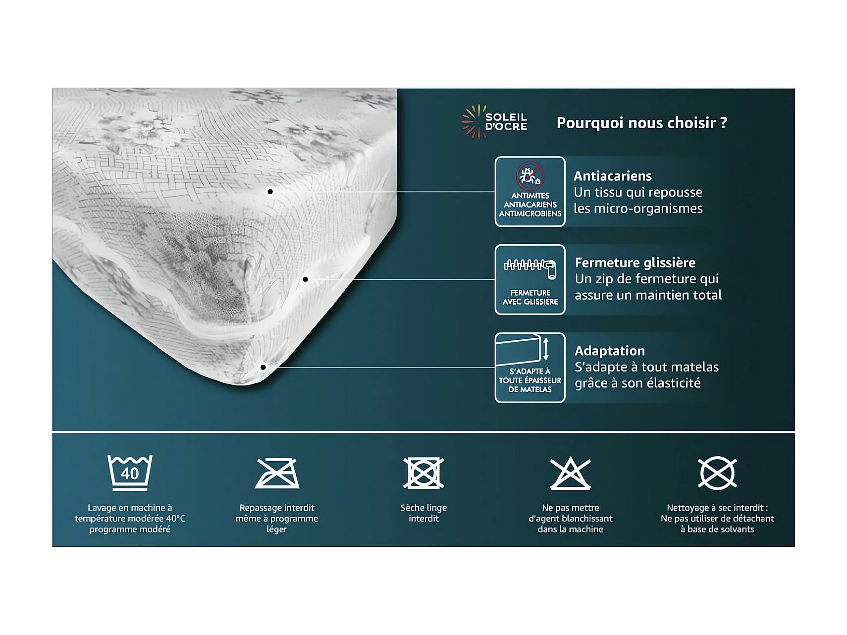 Protège matelas 160X200 cm MICROFIBRE, par Soleil d'ocre