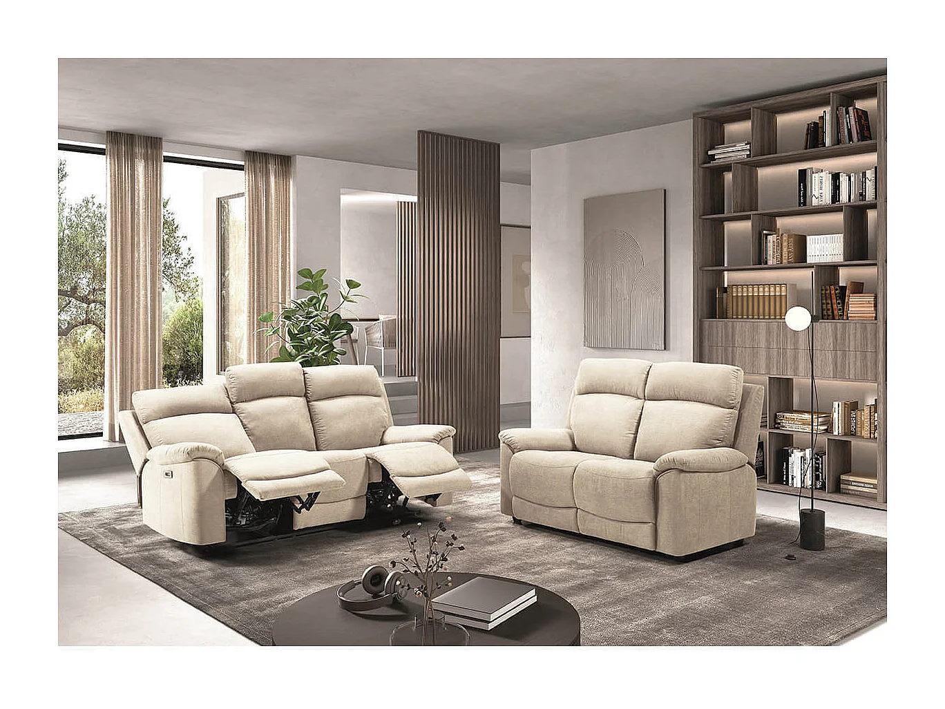 HUESCA - Canapé 2 Places Fixe Tissu Ivoire