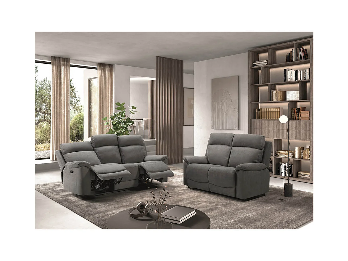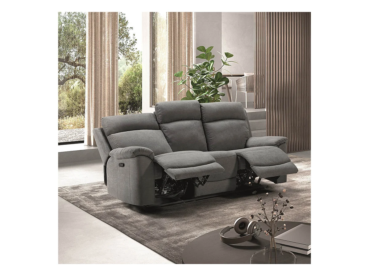 HUESCA - Canapé 3 Places Relax Manuel Tissu Gris