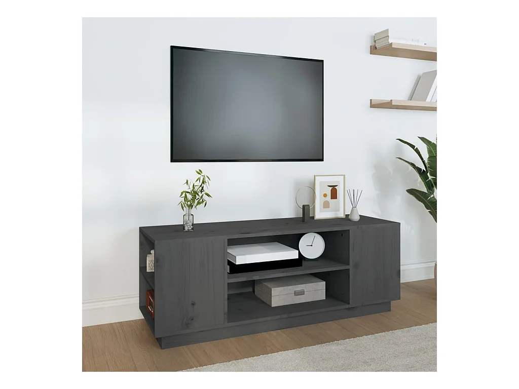 Hylindra Meuble TV Gris 110x35x40,5 cm Bois de pin massif