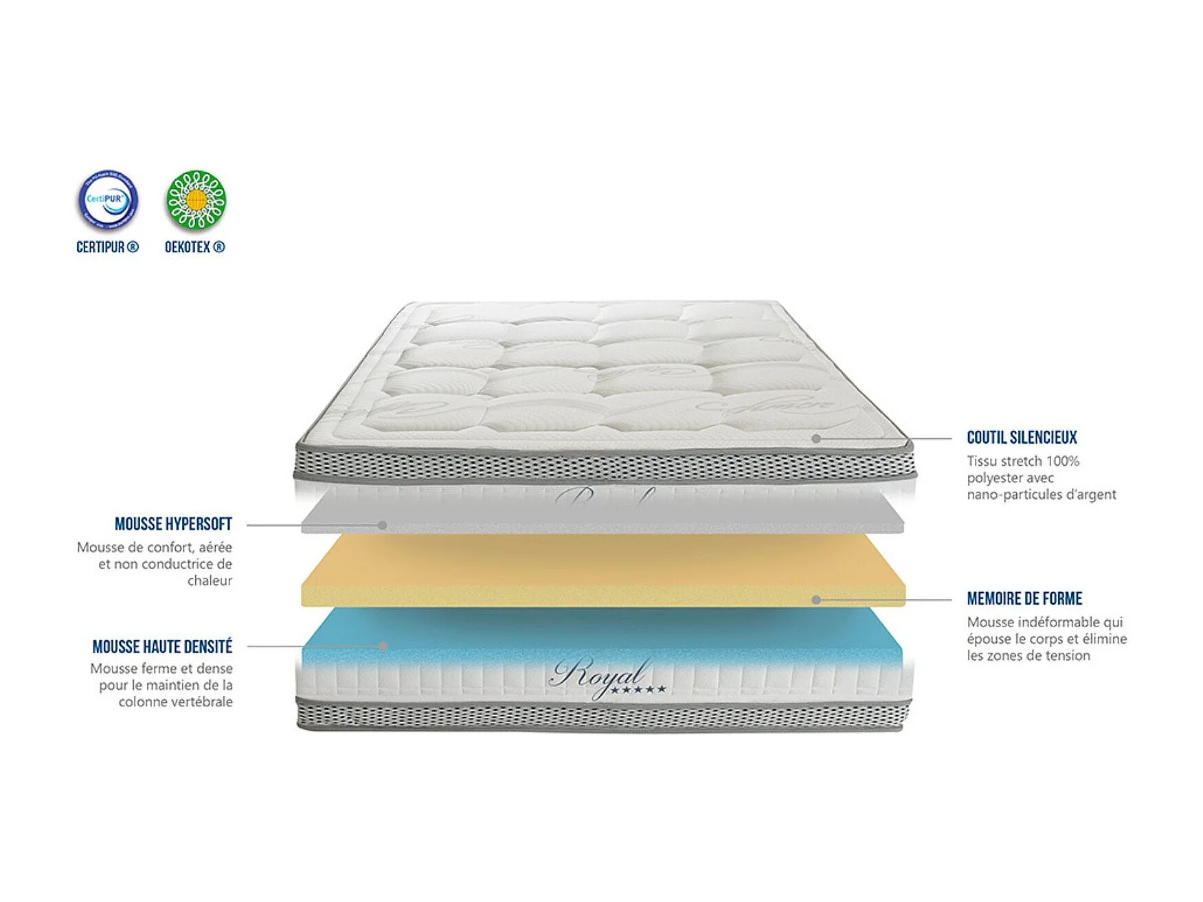 ROYAL 5* - Matelas mémoire de forme + sommier + accessoires