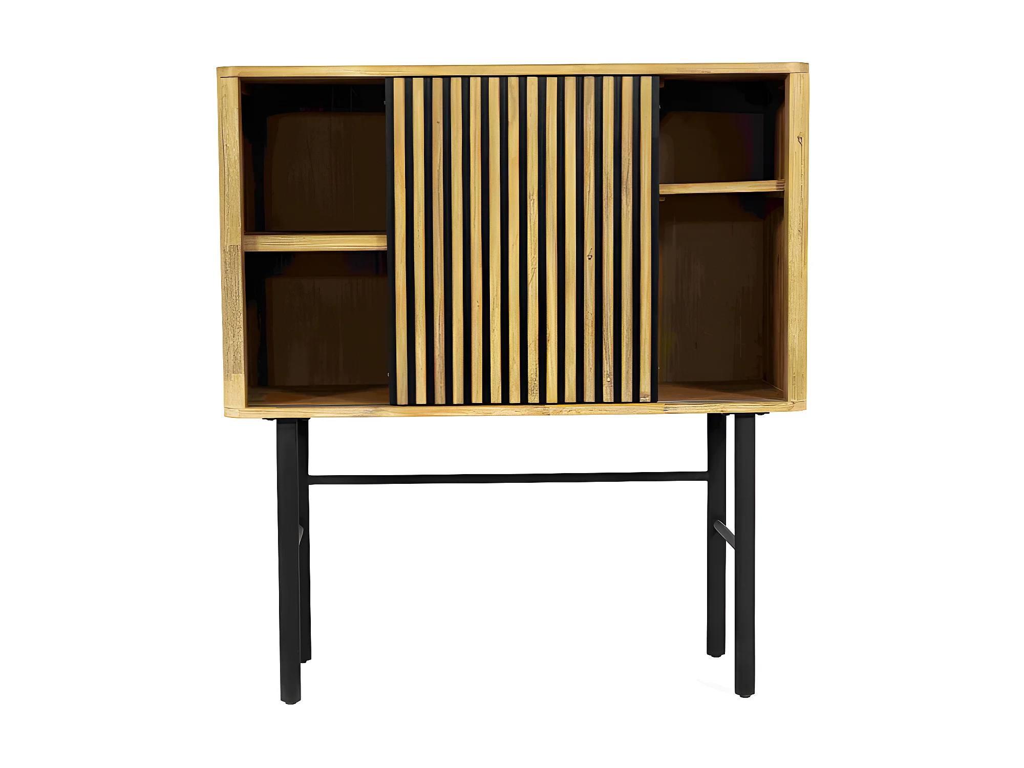 Ibiza buffet haut en bois d'acacia - 1 porte coulissante - 3 étagères - Style industriel - H142