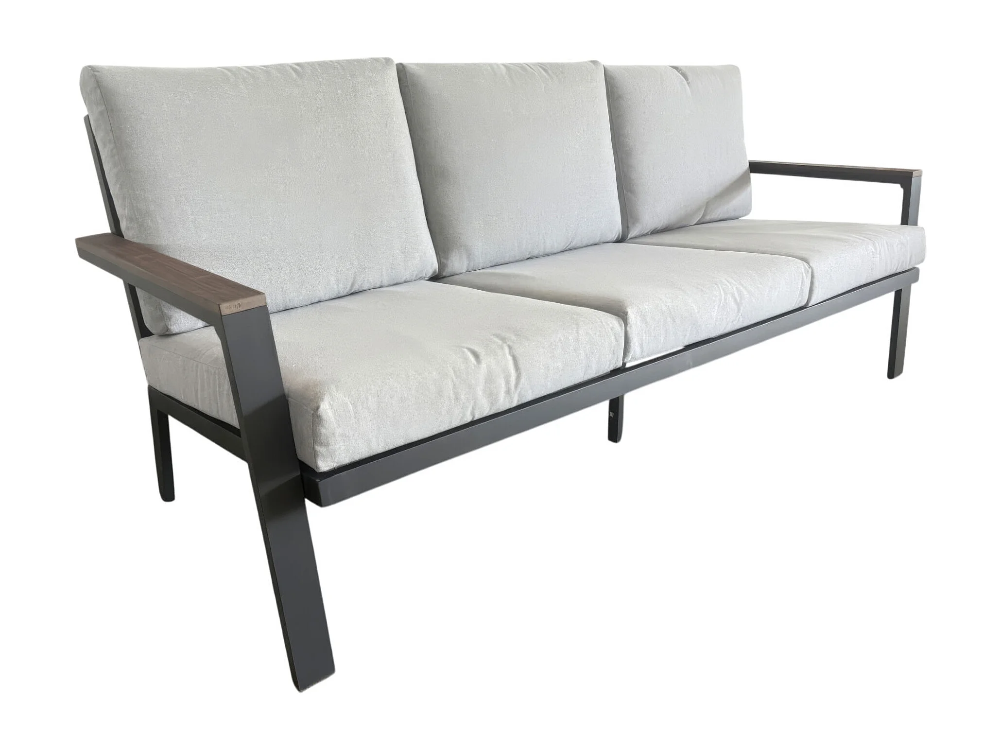 Ikigai - Salon de Jardin avec Canapé 3 Places, 2 Fauteuils et Table Basse avec Coussins en Aluminium et Bois Contreplaqué
