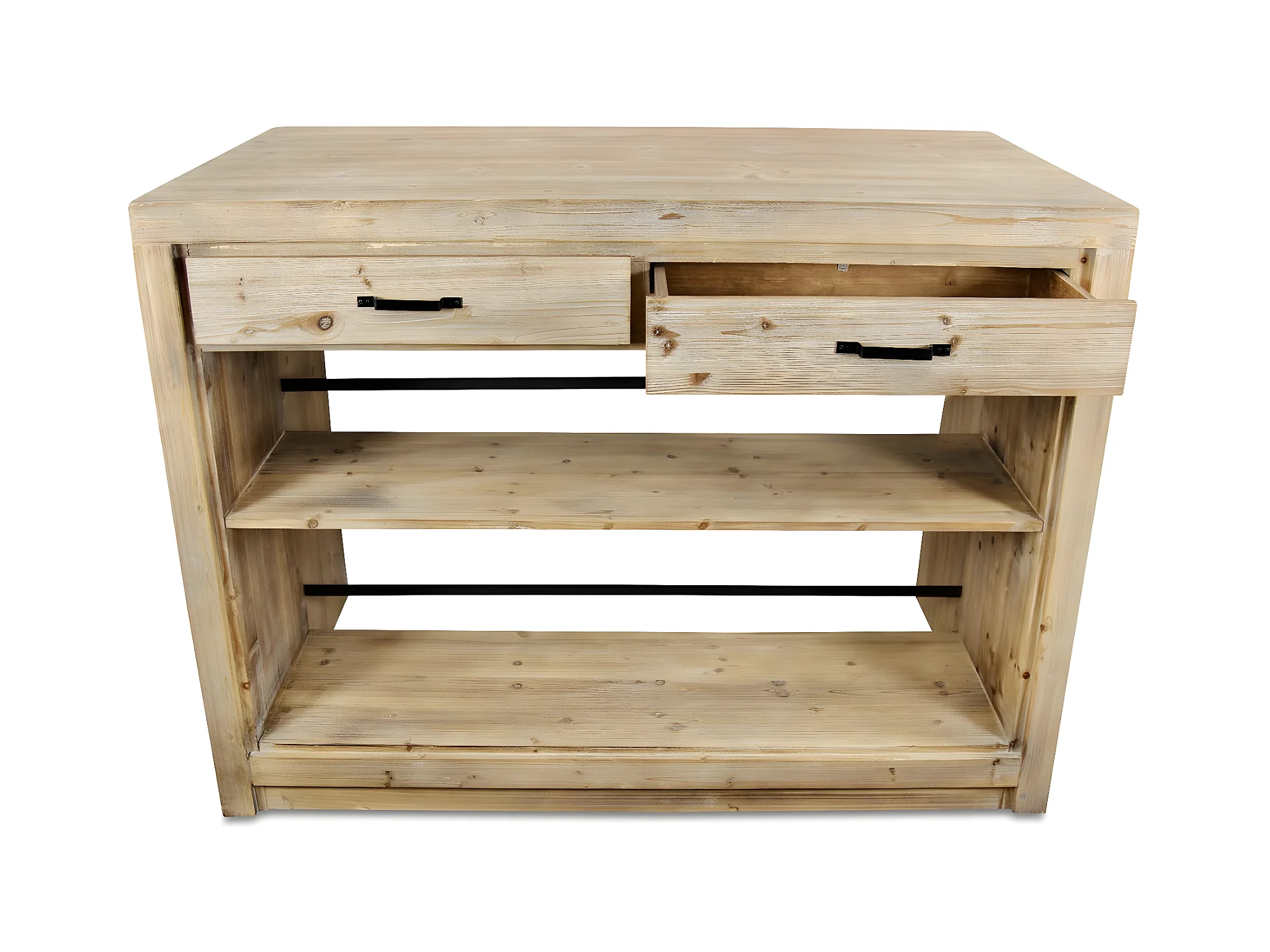 Ilot 2 tiroirs naturel Bois Naturel - Esmée Décoration d'Autrefois