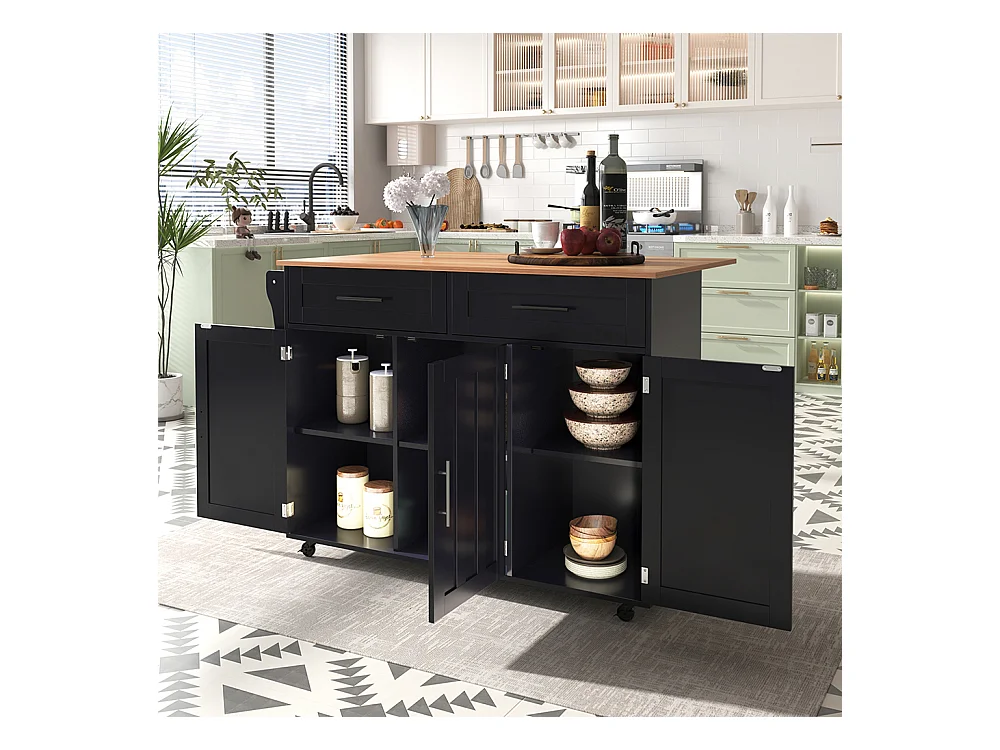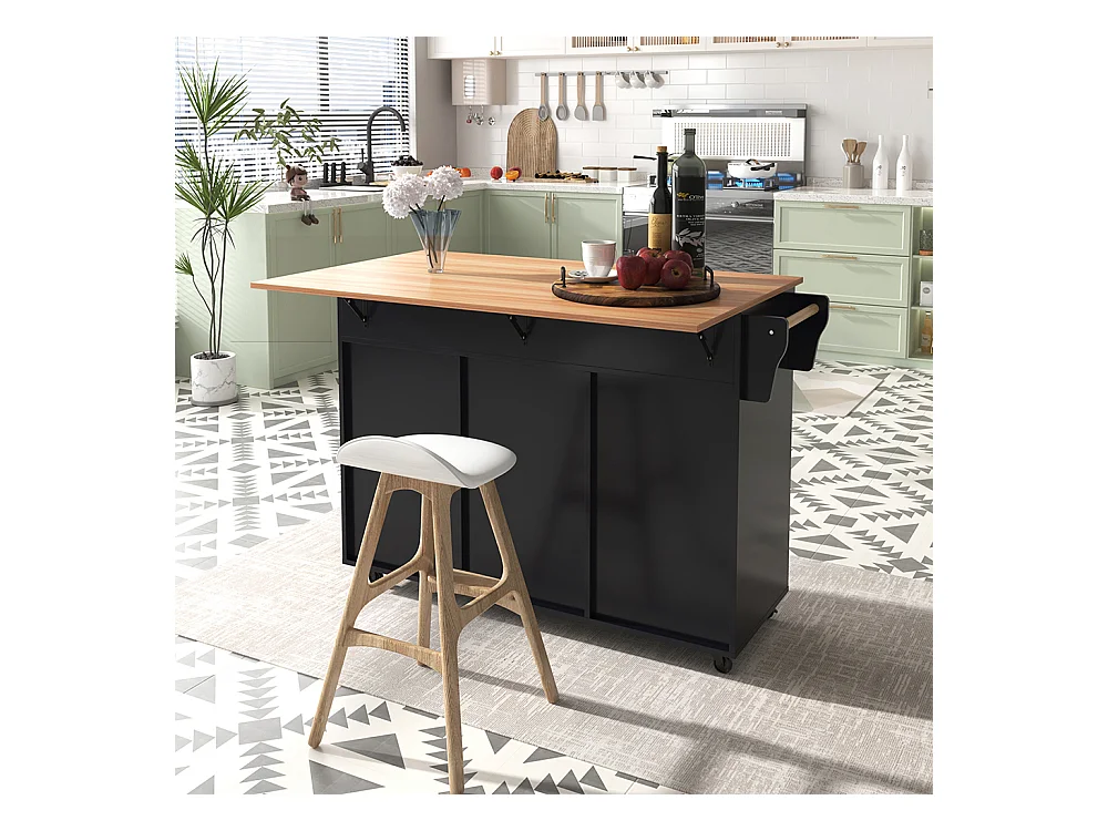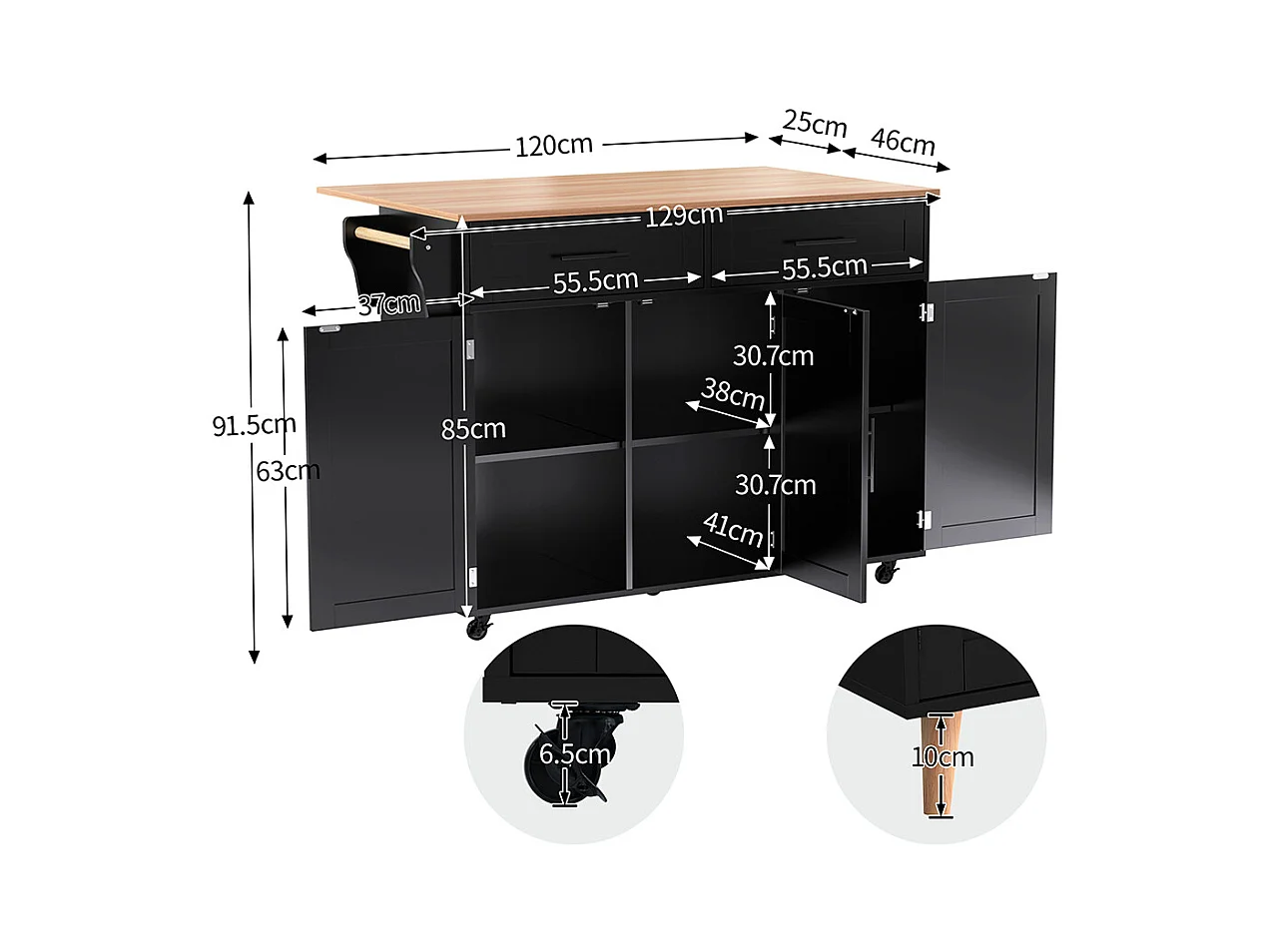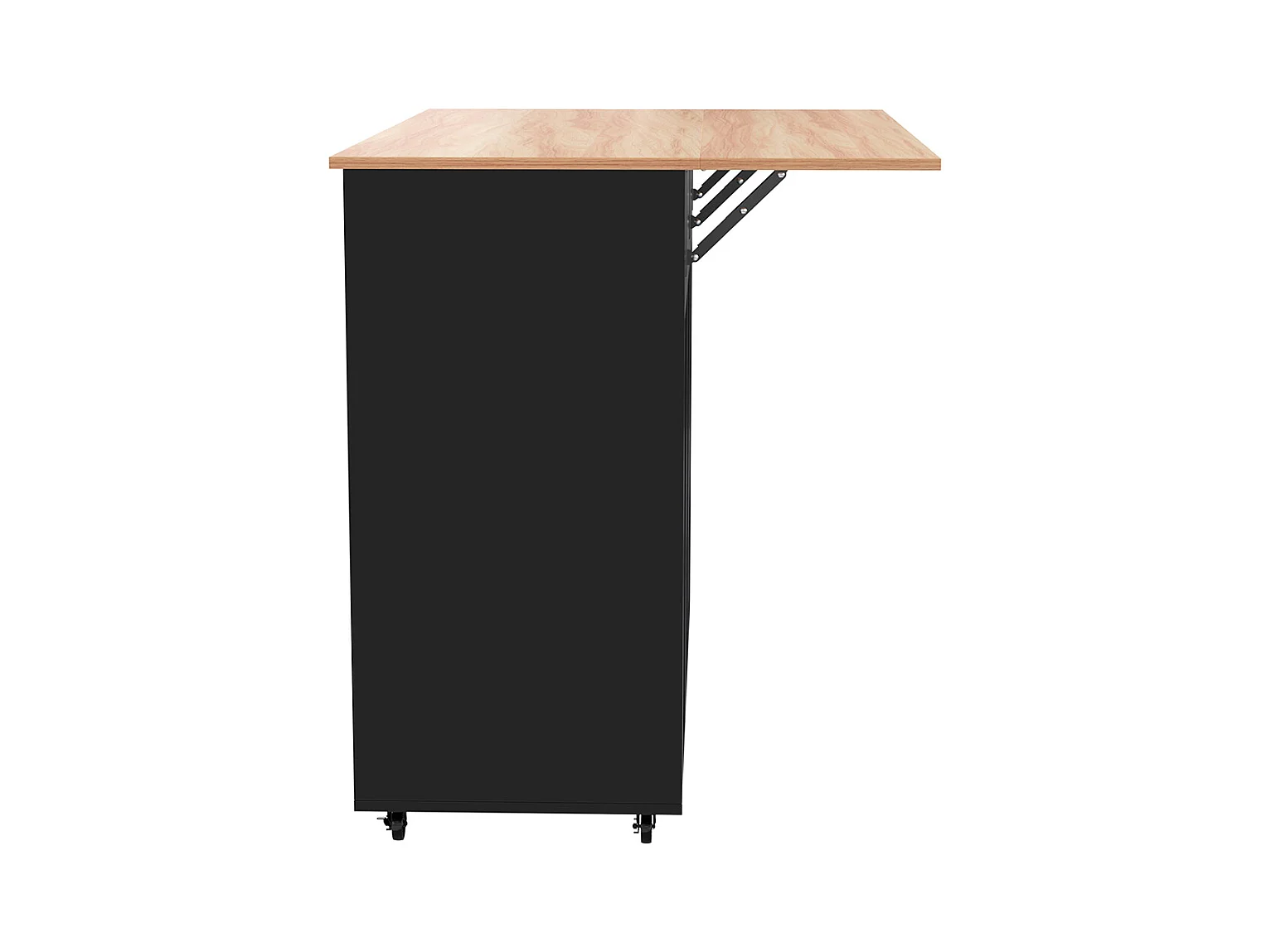 Îlot central chariot plateau rabattable étagères portes armoire îlot 5 roulettes rangement 2 tiroirs salle à manger noir