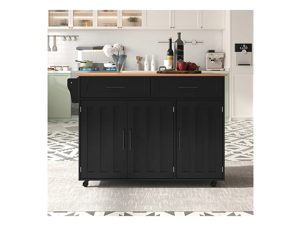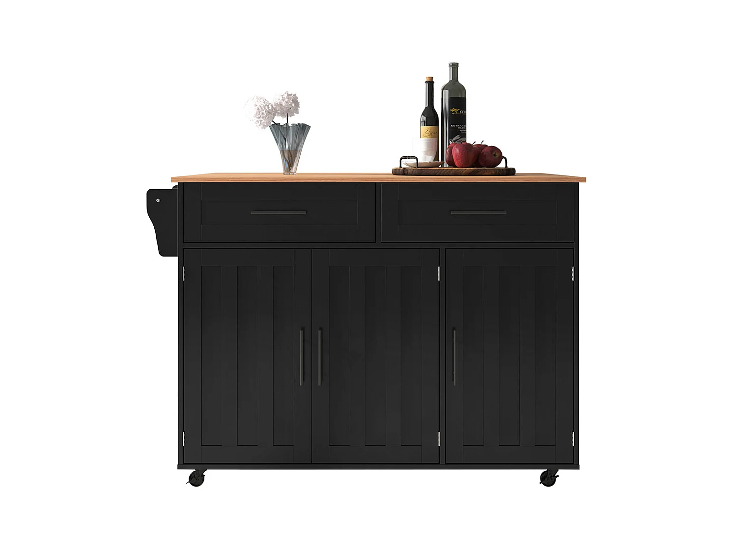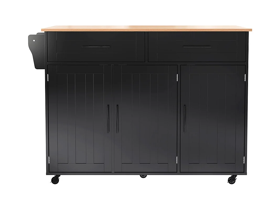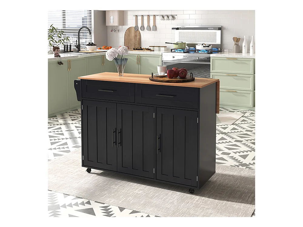 Îlot central chariot plateau rabattable étagères portes armoire îlot 5 roulettes rangement 2 tiroirs salle à manger noir