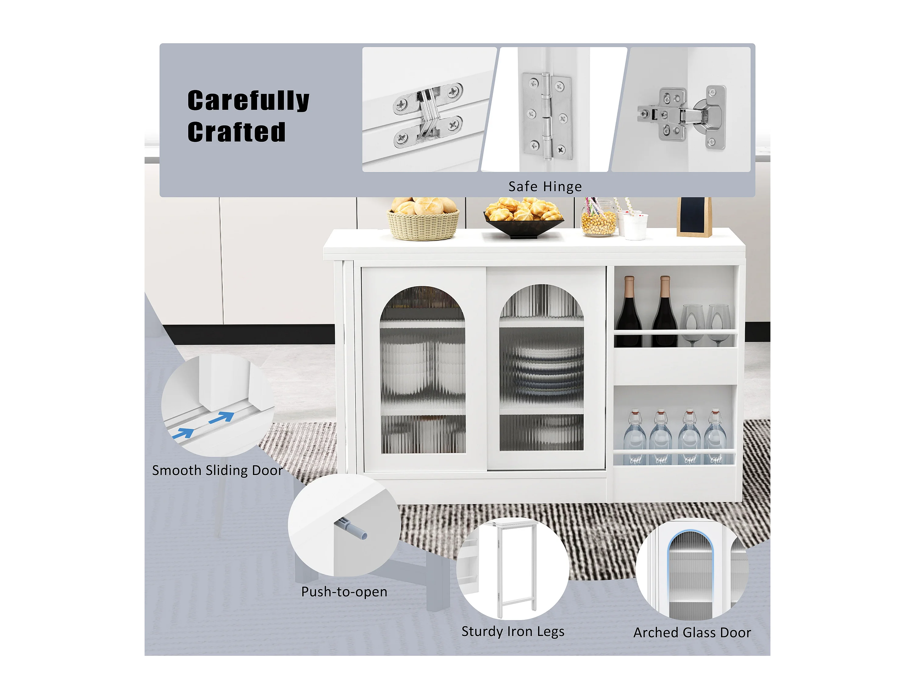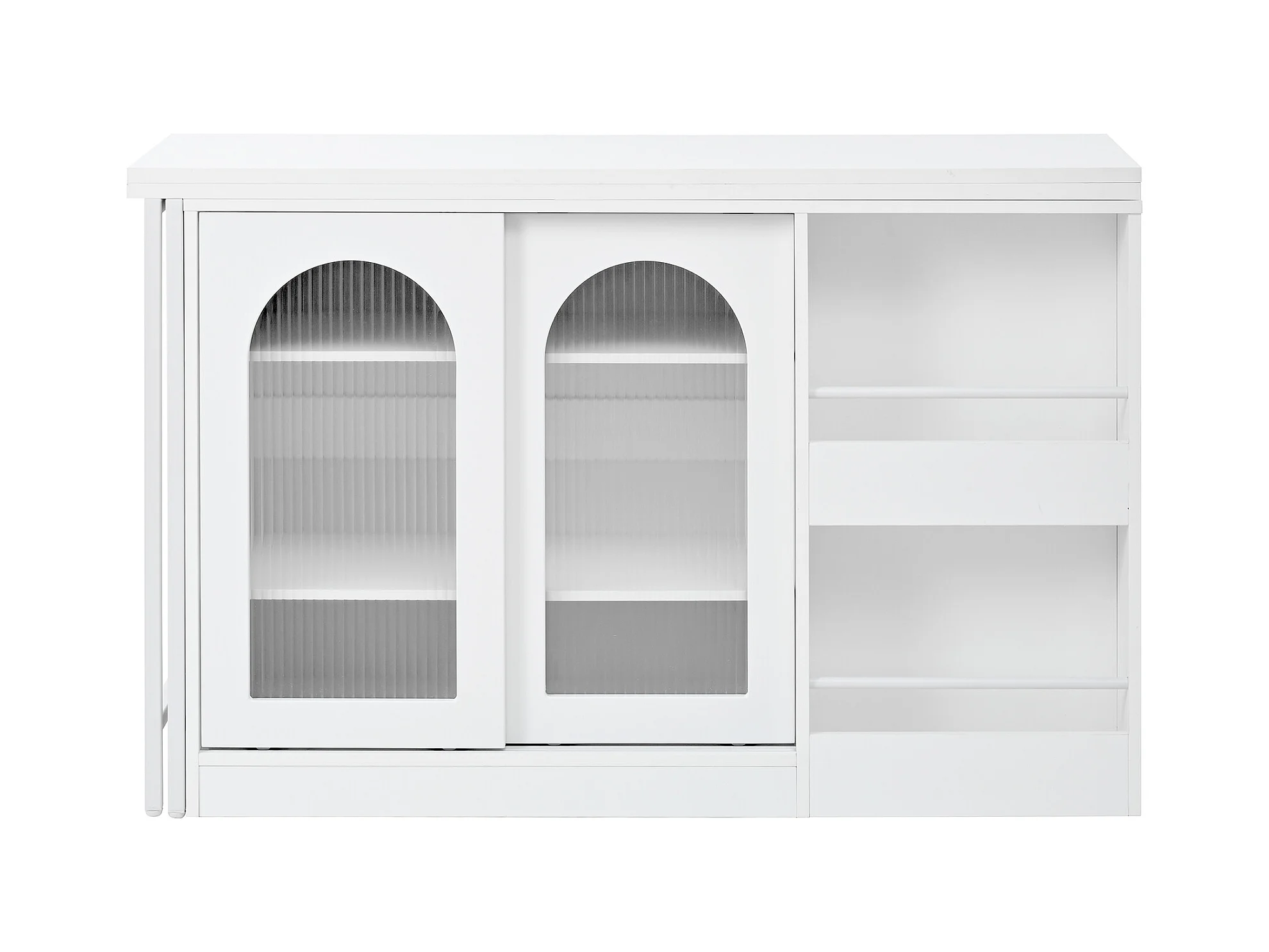 Ilot central de cuisine - avec plateau escamotable pivotante - avec portes vitrées et espace de rangement - MDF - Blanc
