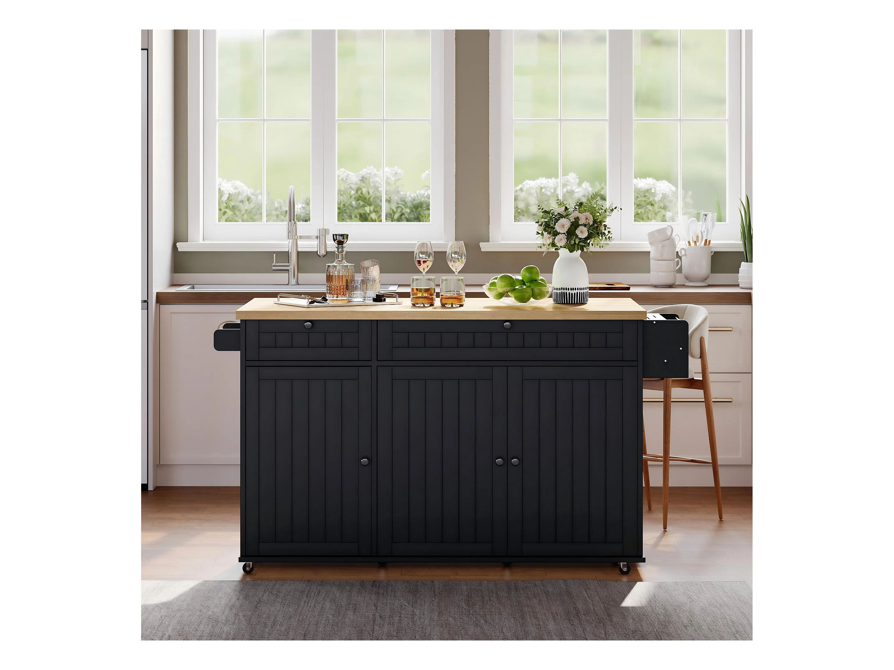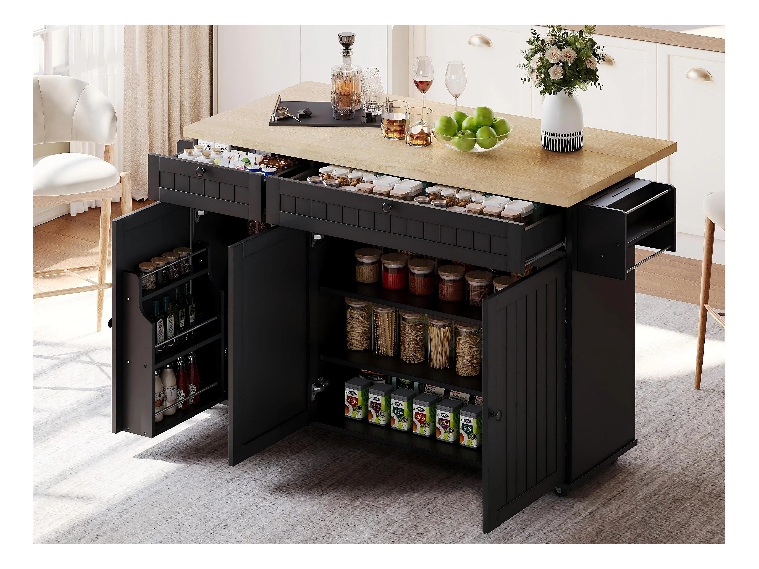 Ilot central de cuisine mobile - plateau extensible - avec roulettes verrouillables - avec 2 tiroirs et 3 portes - MDF - Noir