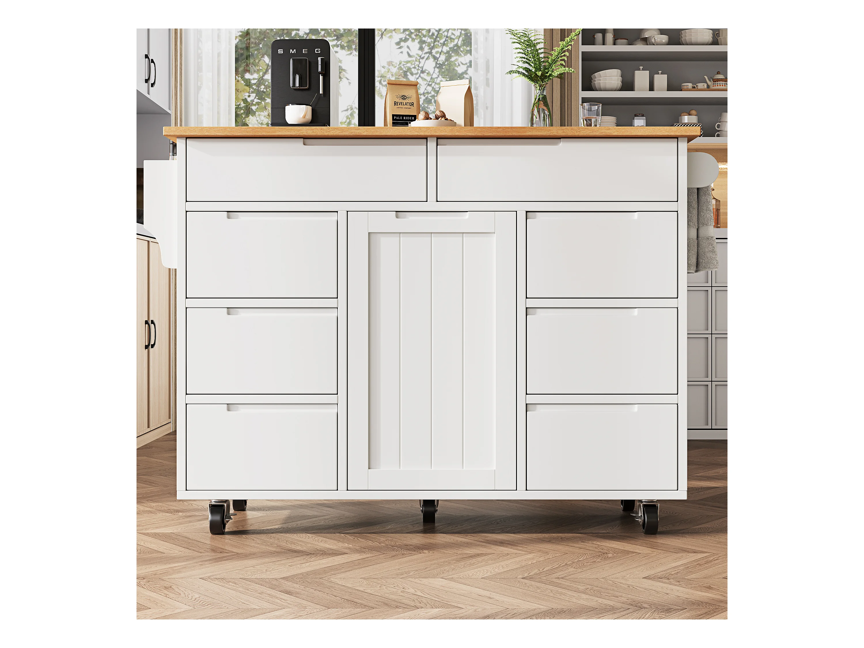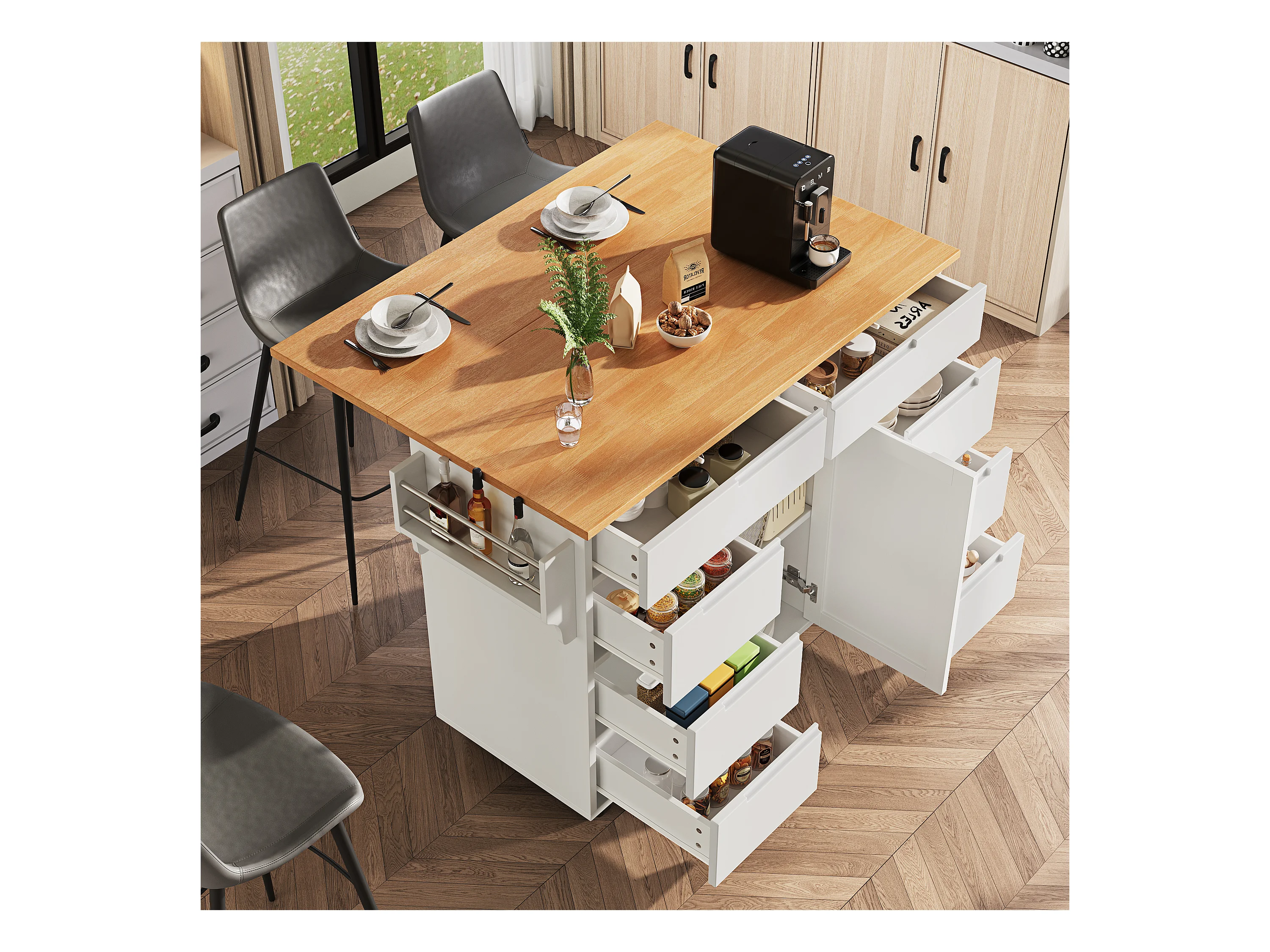 Îlot de cuisine à roulettes - 122 x 40 x 91.5 cm - chariot de cuisine extensibleet + 8 tiroirs - MDF - blanc