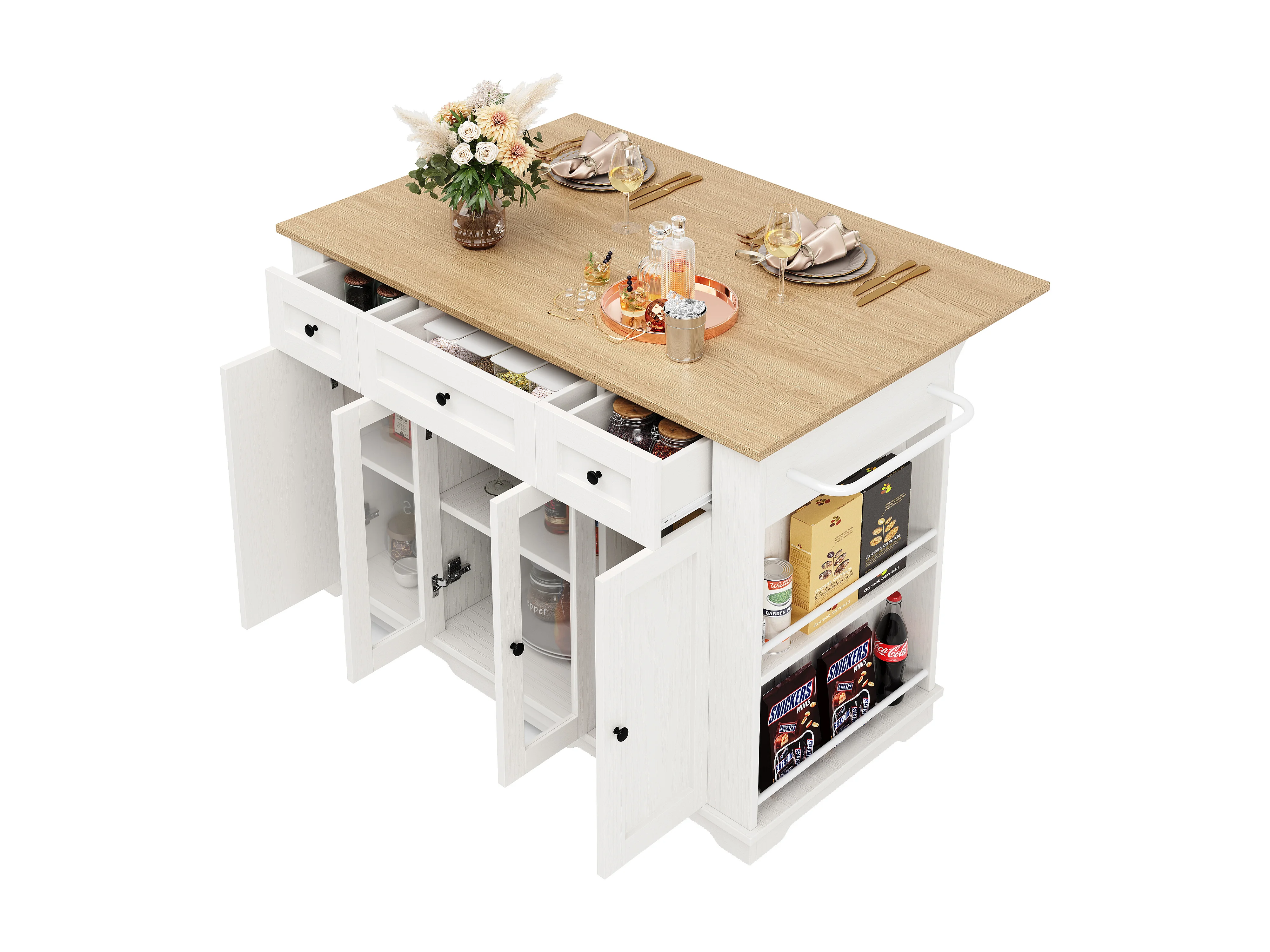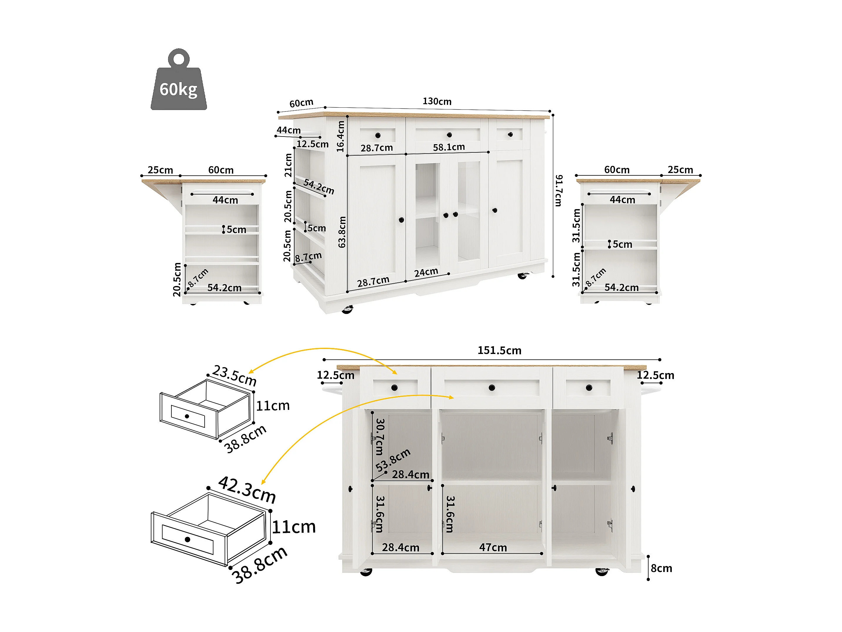 Îlot de cuisine avec séparateurs amovibles, meuble de cuisine multifonction, buffet avec plan de travail(151.5x60x91.7 cm)