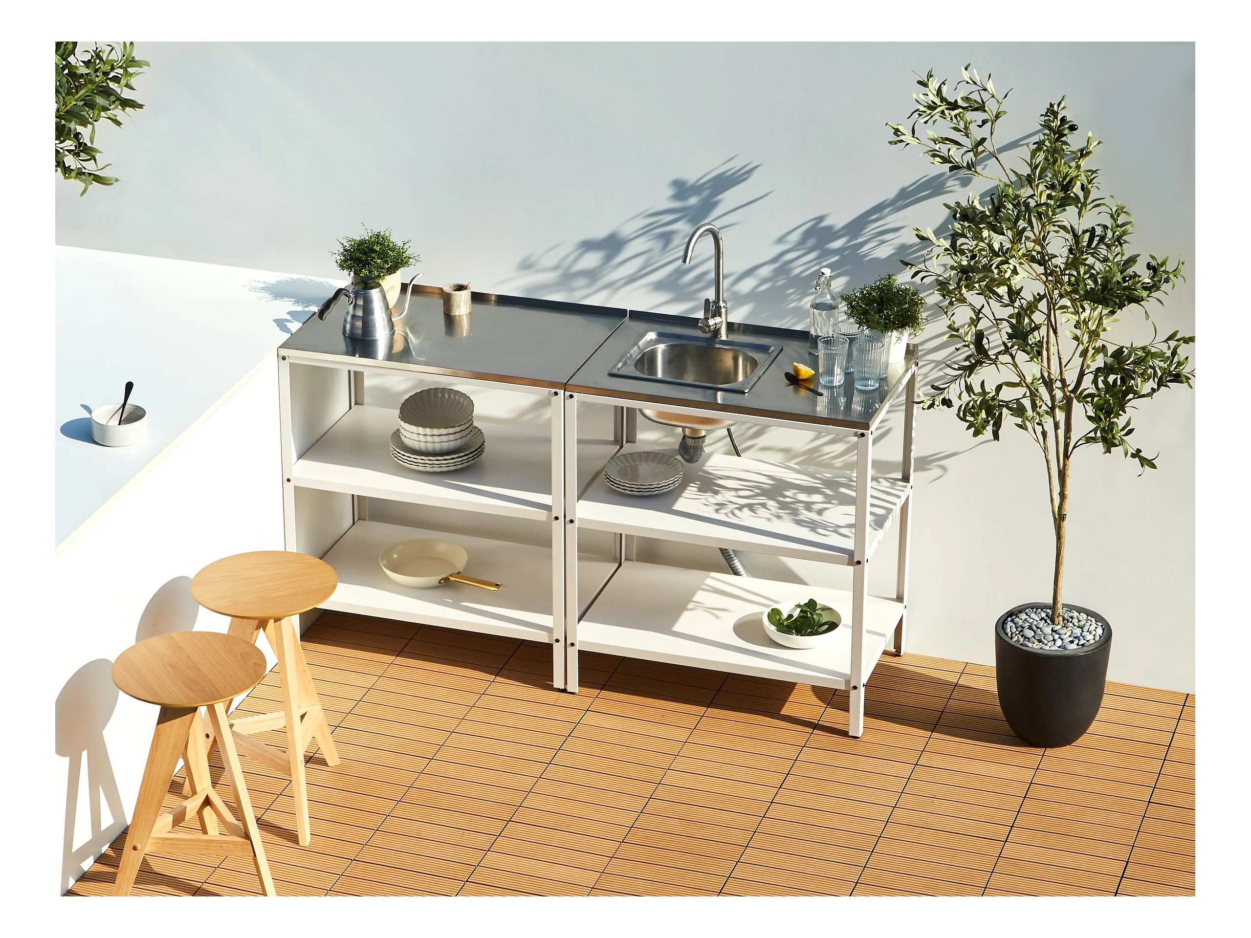 Ilot de cuisine extérieure avec évier VILAMA Blanc