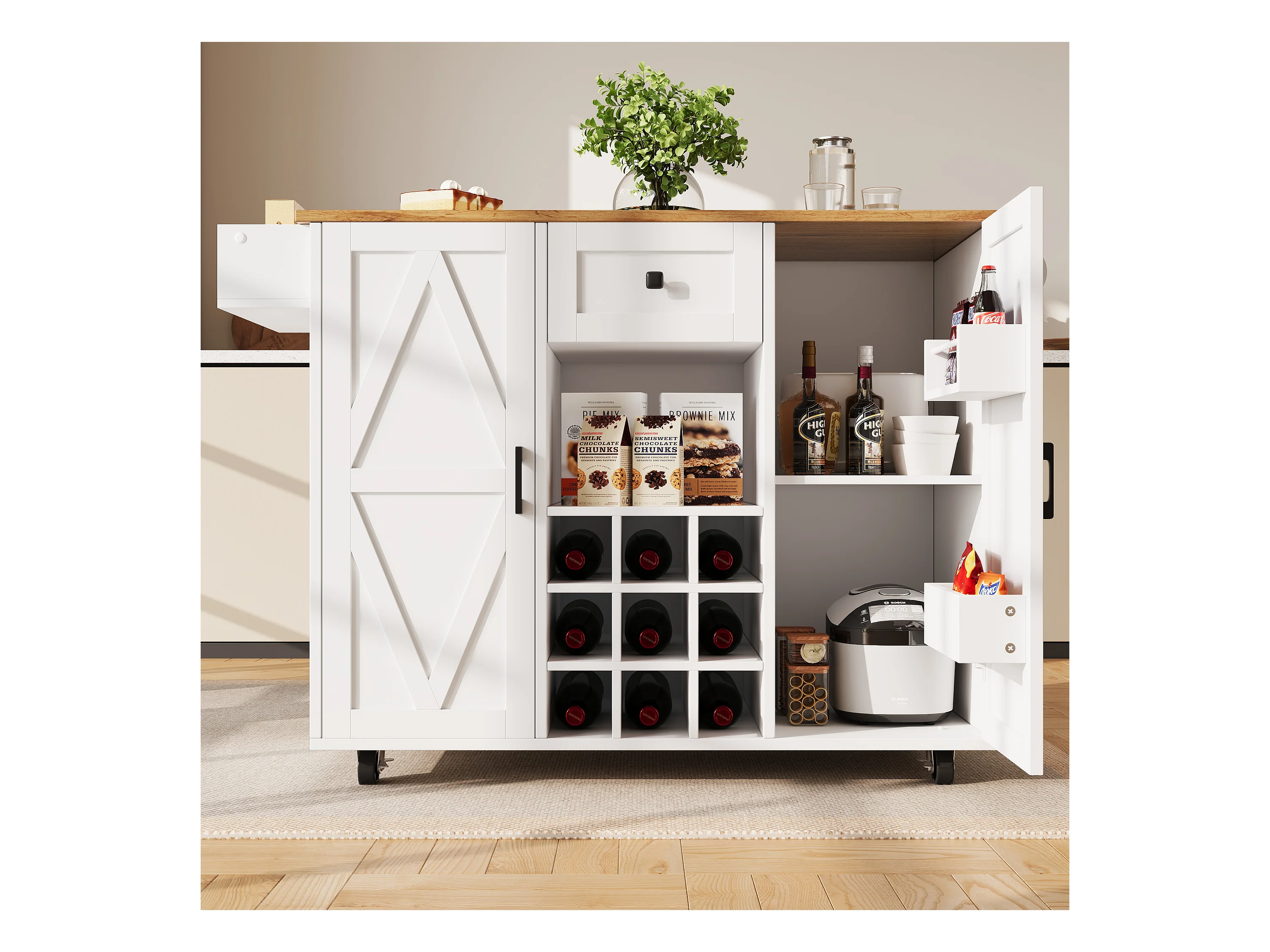 Îlot de cuisine moderne, meuble buffet avec grain de bois, 137.5×39.5×95.6 cm, MDF, Blanc