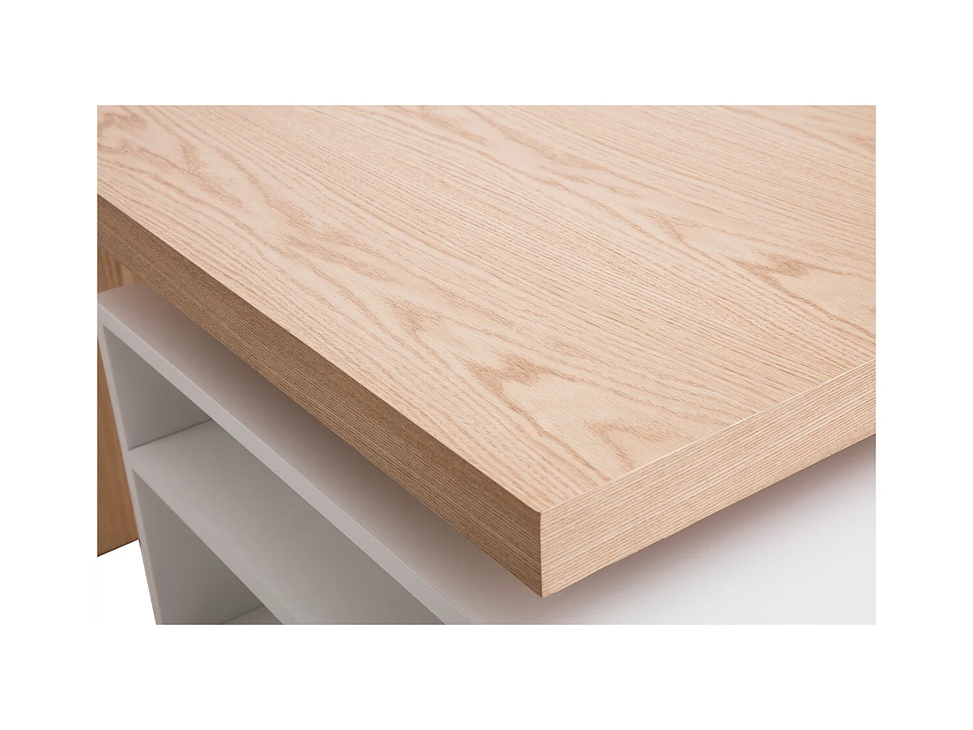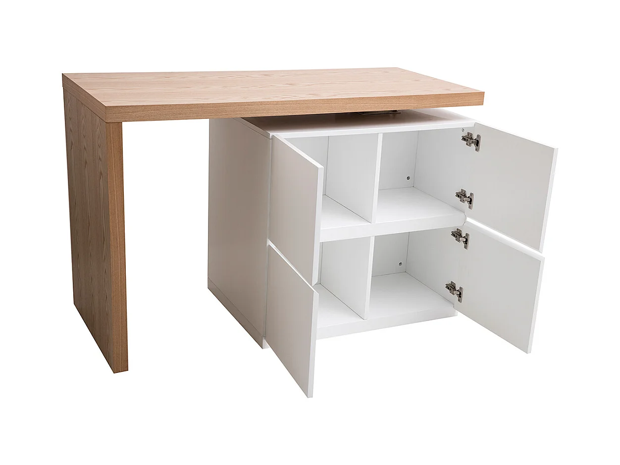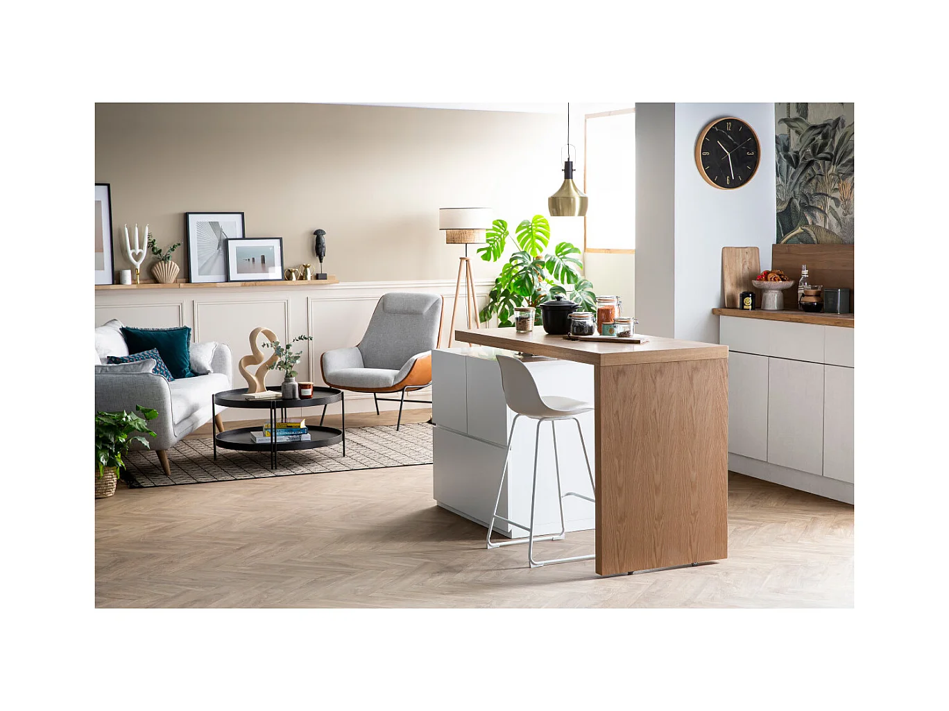 îlot - table de bar modulable avec rangement blanc mat et bois clair chêne L140-165 cm MAX