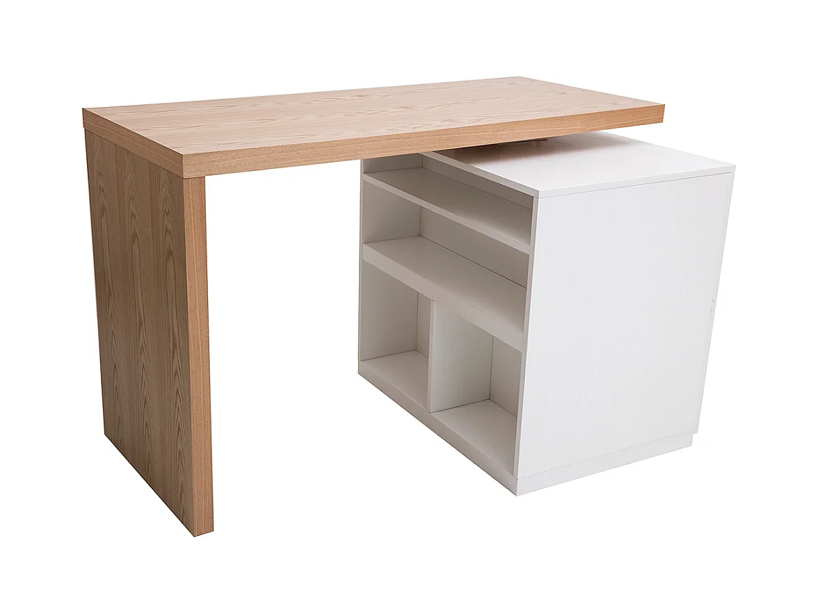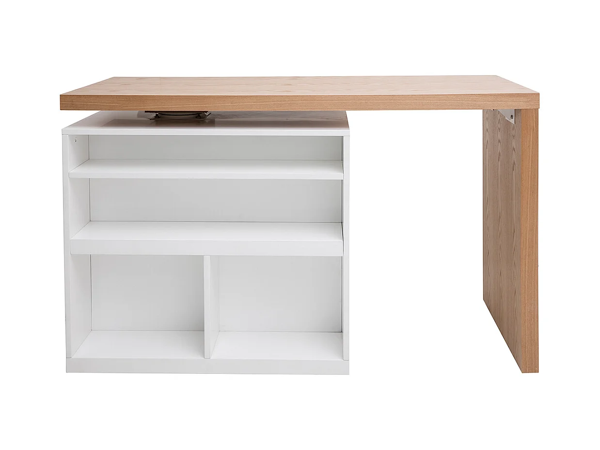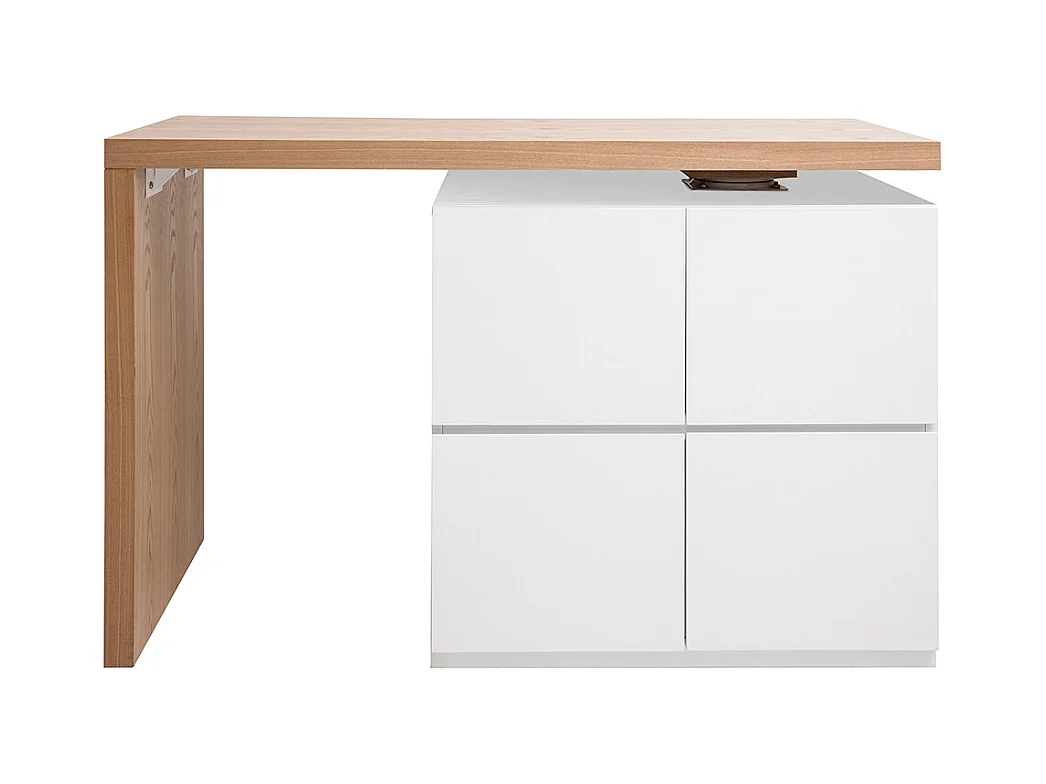 îlot - table de bar modulable avec rangement blanc mat et bois clair chêne L140-165 cm MAX
