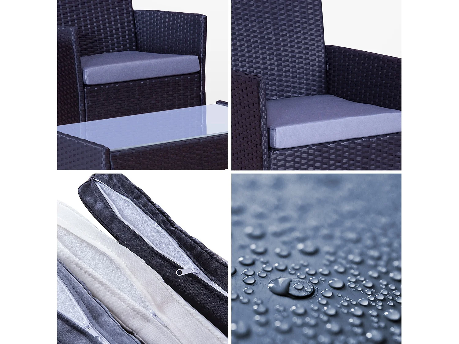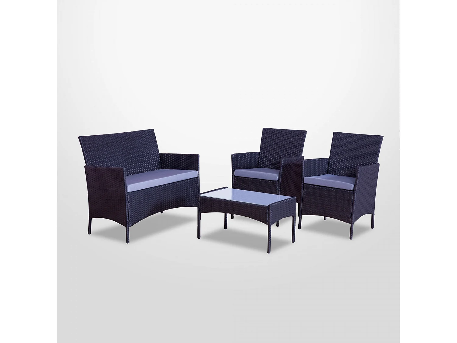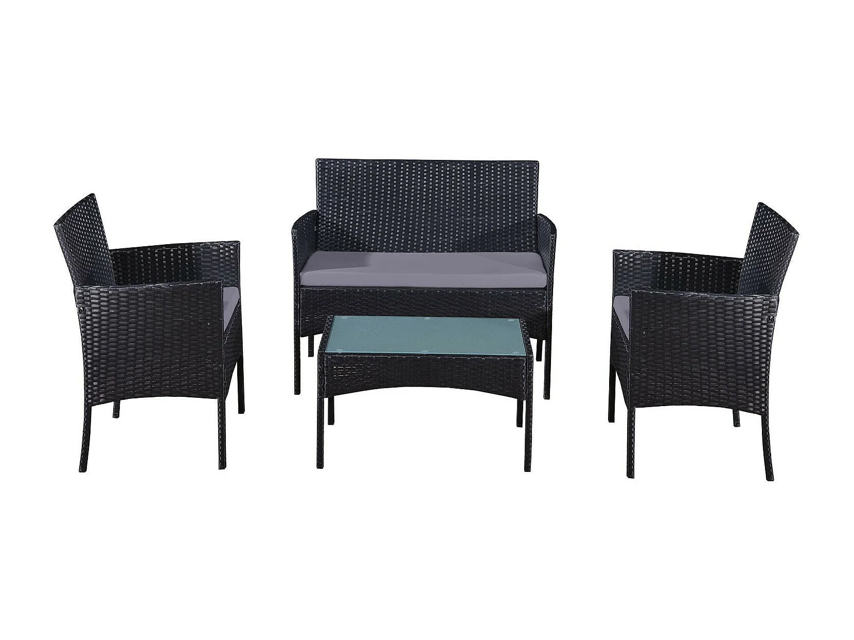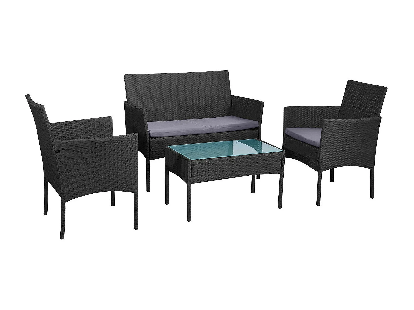 Salon de jardin résine tressée Noir/Gris - ensemble 4 places - Canapé + Fauteuil + Table - IMORA