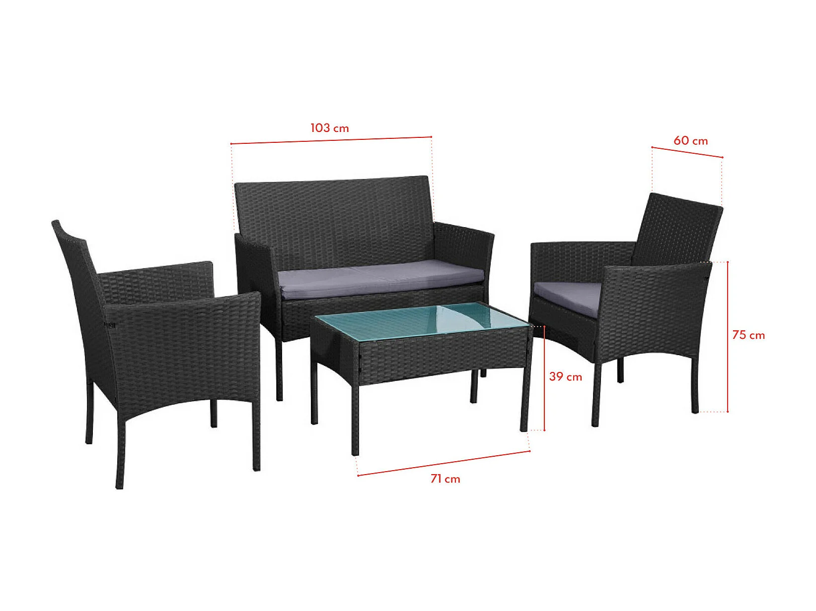 Salon complet de jardin noir