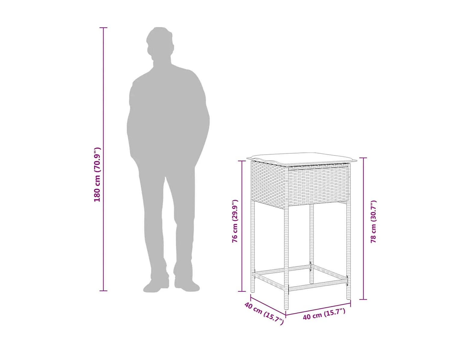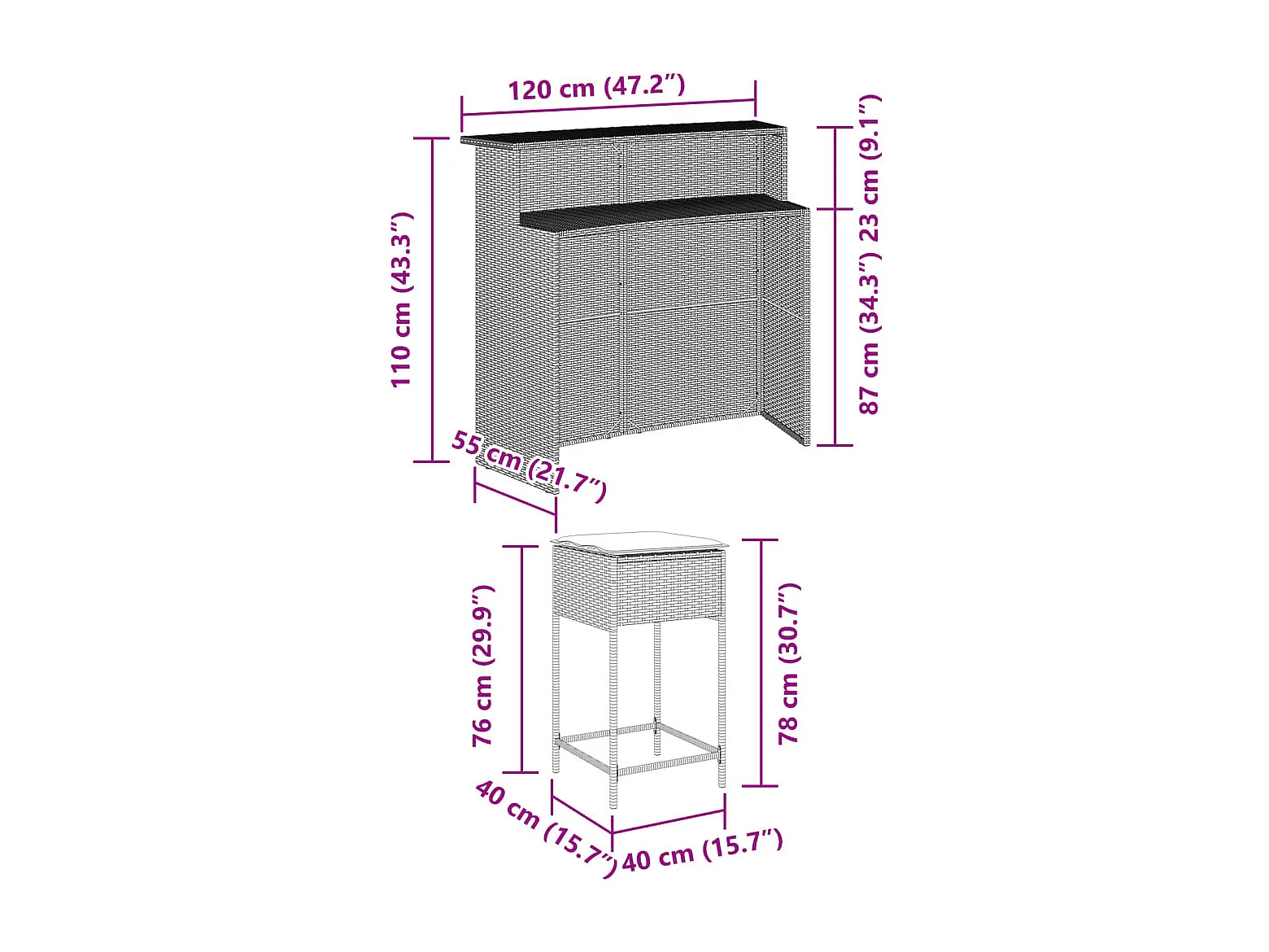 Inarin Ensemble de bar de jardin 3 pcs et coussins gris résine tressée