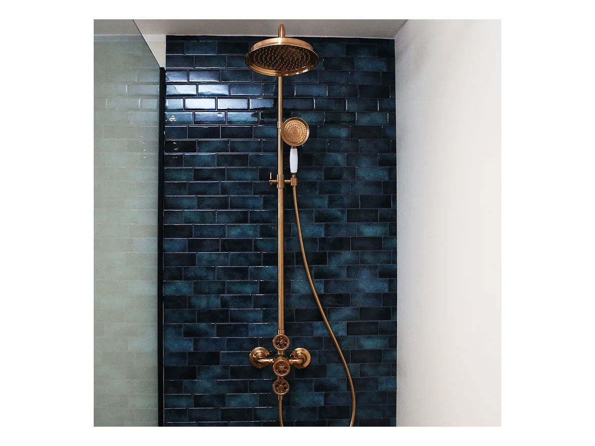 Indus colonne de douche thermostatique cuivre brossé - Essebagno