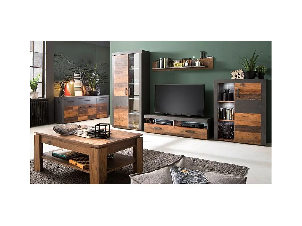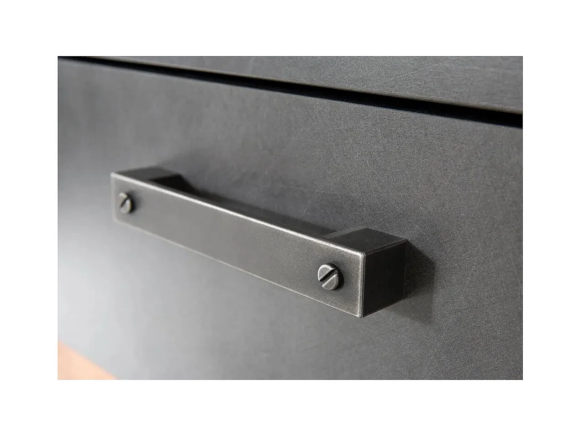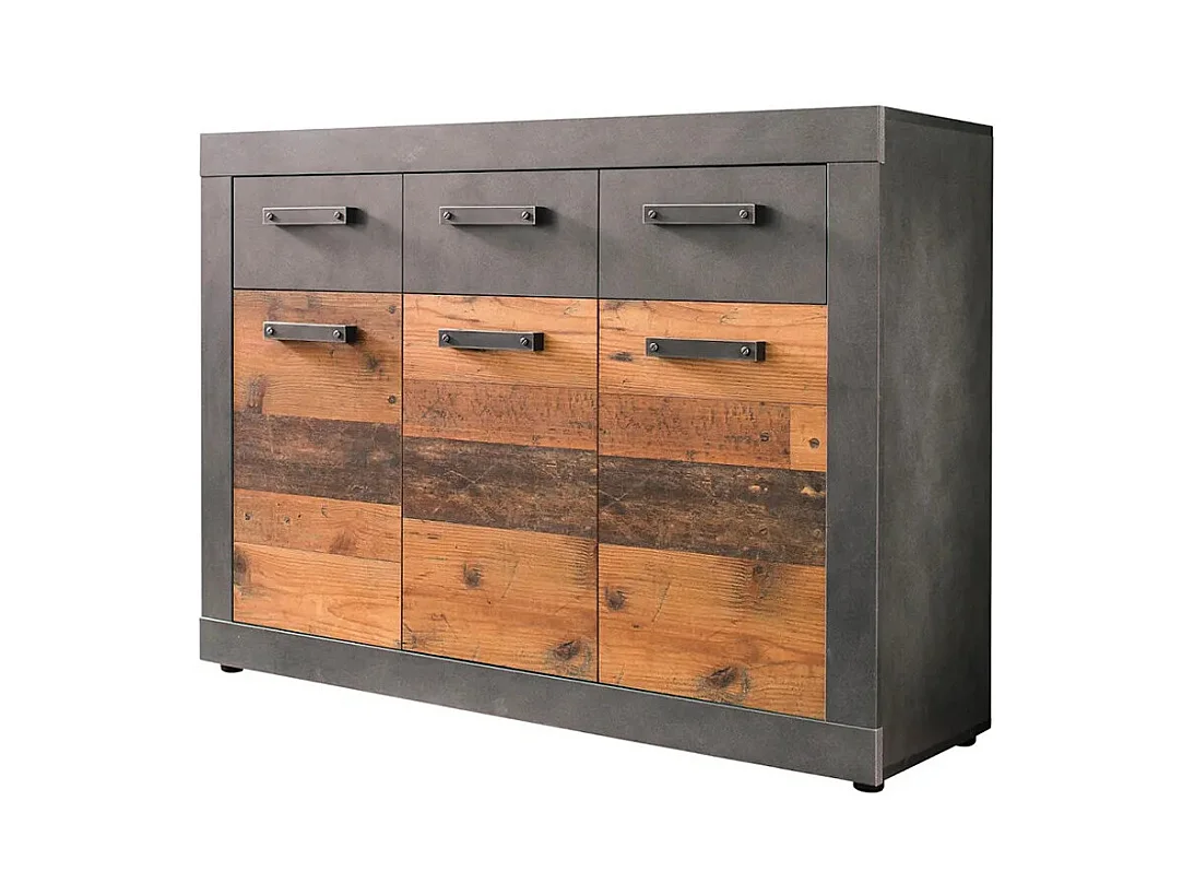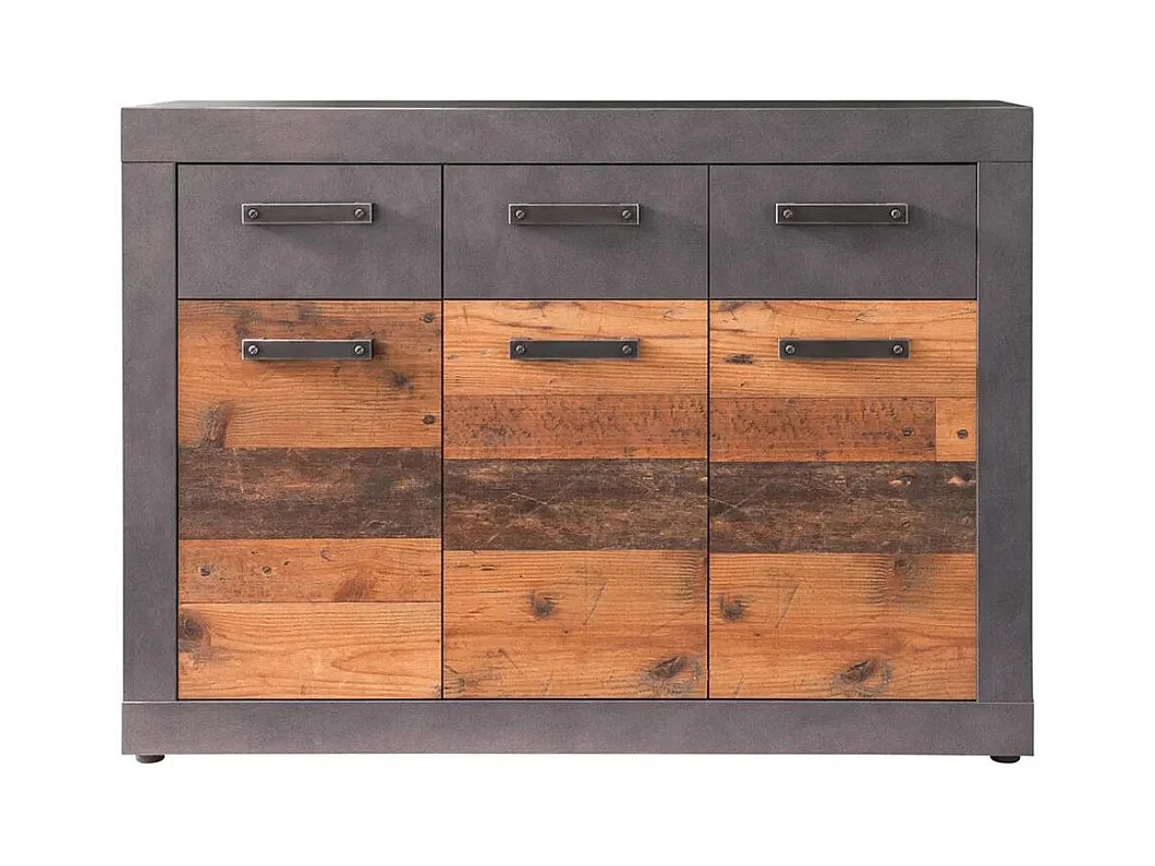 Commode 3 portes 3 tiroirs mélaminé chêne foncé et gris Orcel