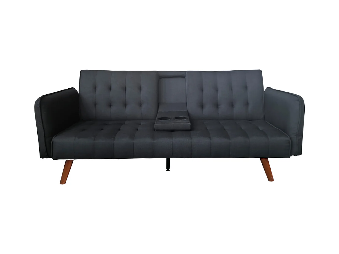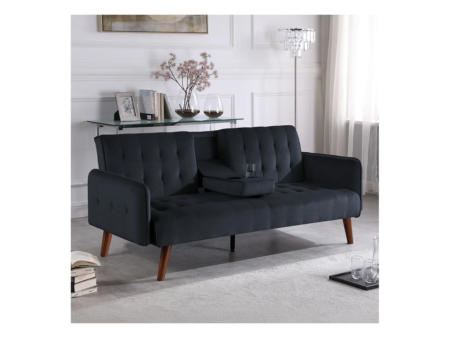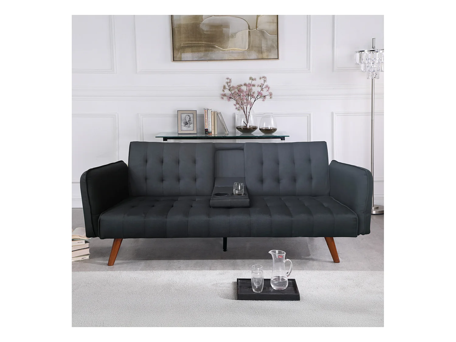 Canapé 3 places convertible avec tablette centrale rabattable noir INVERNESS