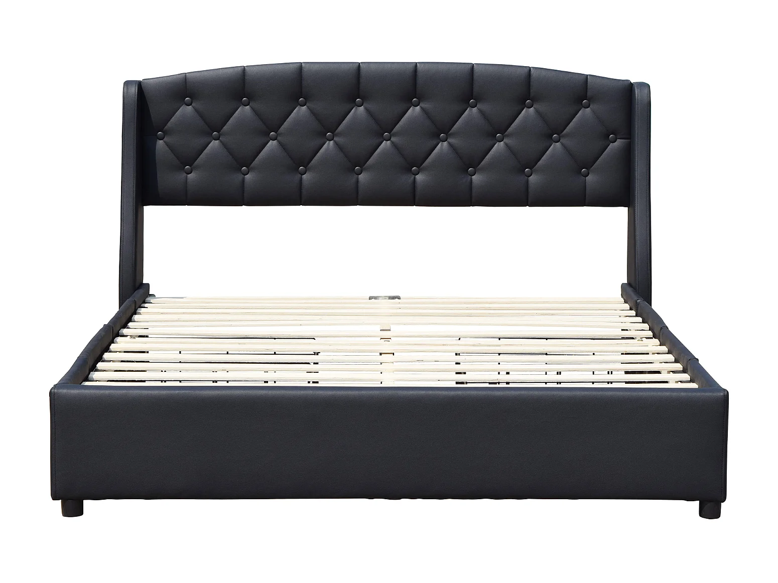 Iris - Solide et Confortable Lit 140x190 avec Sommier avec 4 tiroirs + Tete de lit Couleur Noir + Pieds en 4 cm - 13 Lat