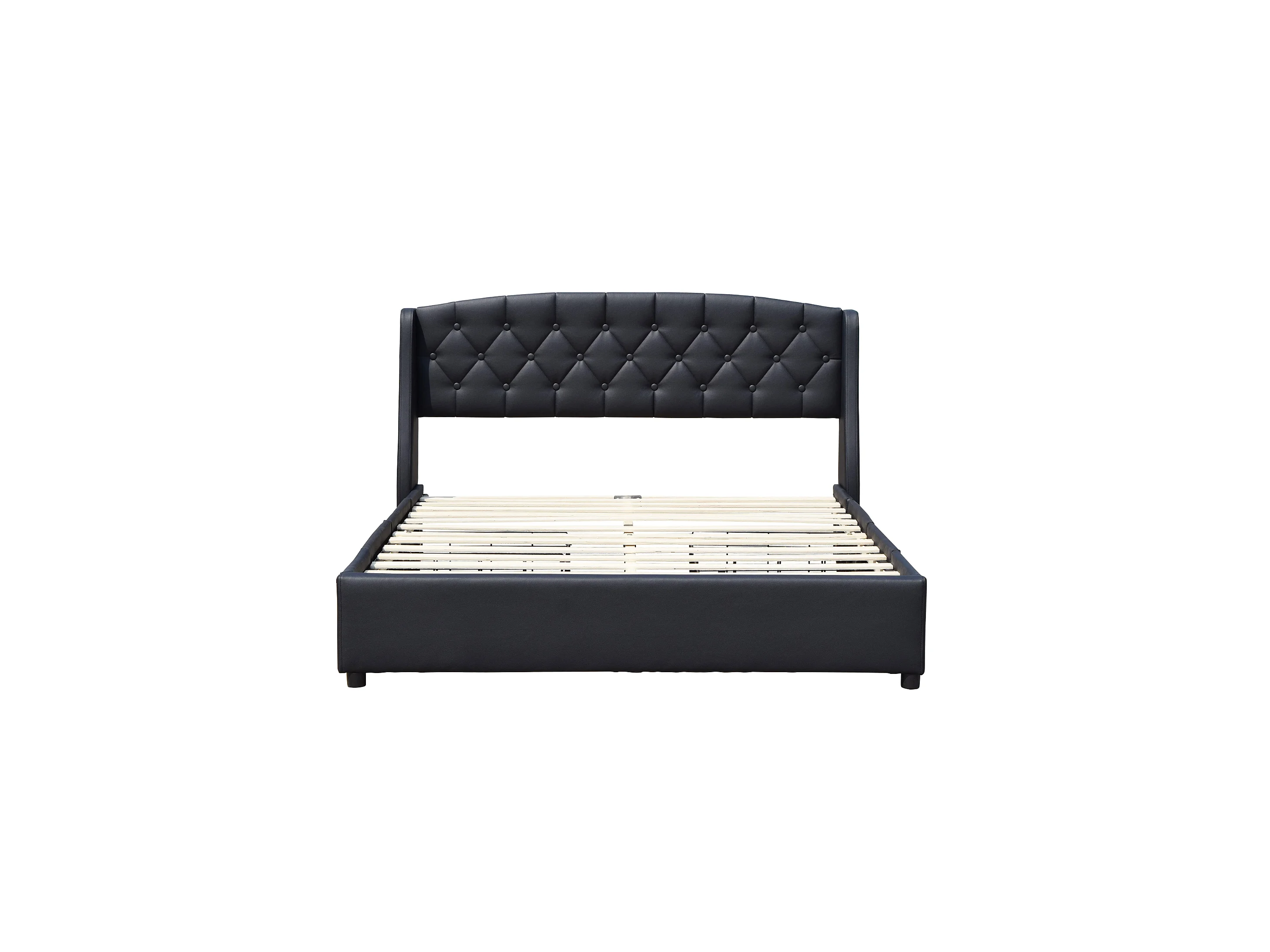 Iris - Solide et Confortable Lit 160x200 avec Sommier avec 4 tiroirs + Tete de lit Couleur Noir + Pieds en 4 cm - 13 Lat