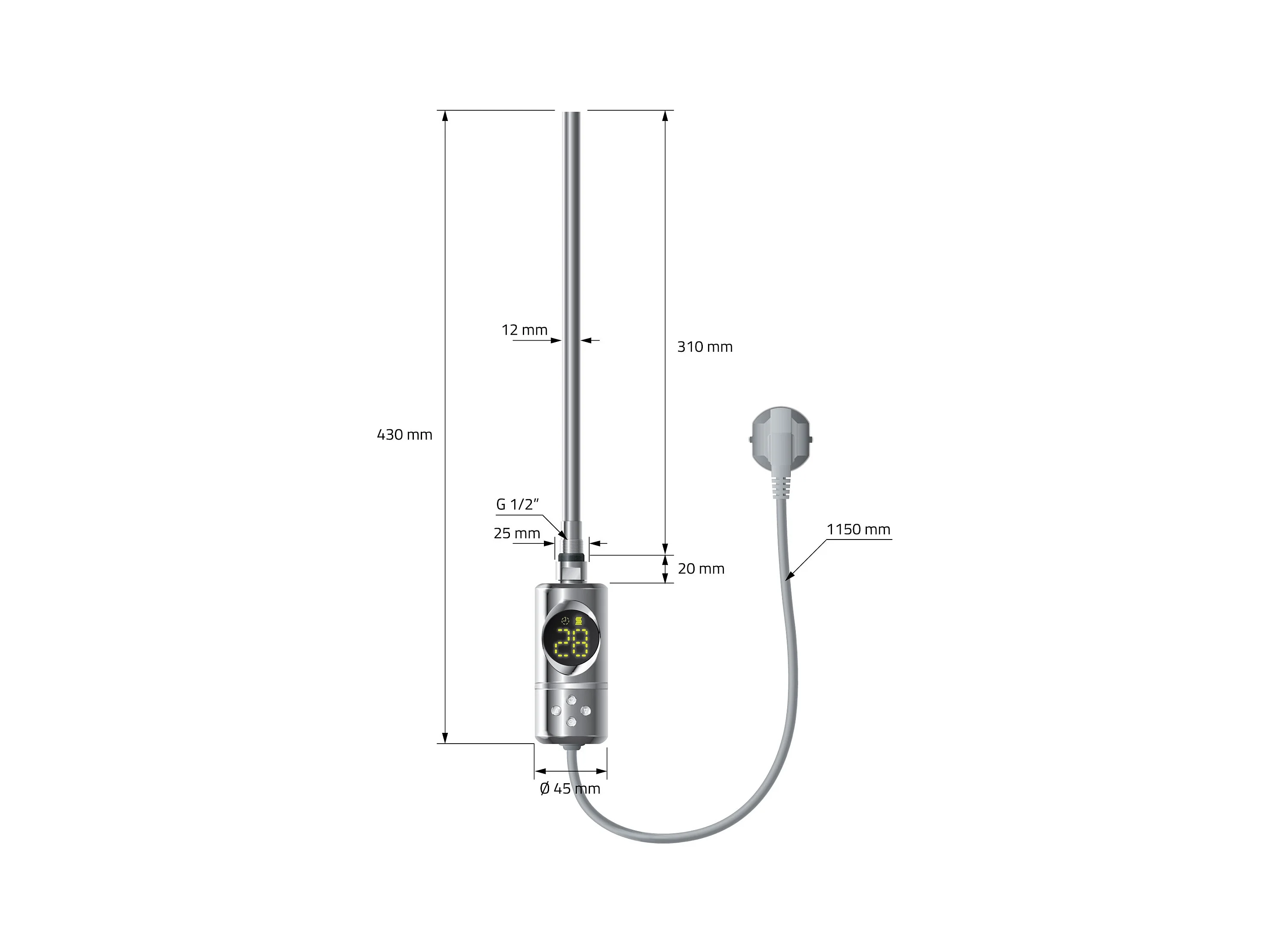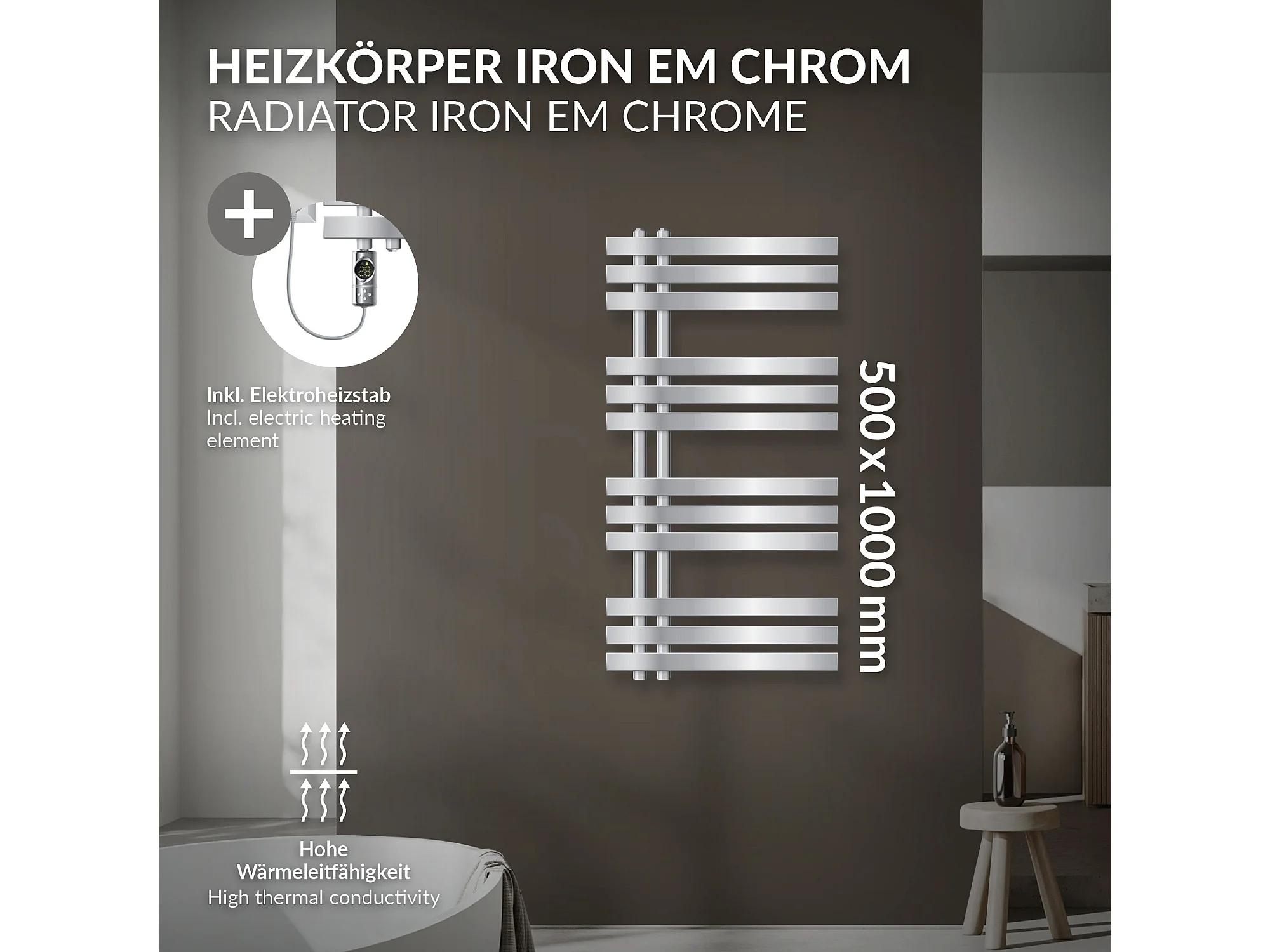 Iron EM radiateur sèche-serviettes chrome 50x100cm élément chauffant 300W