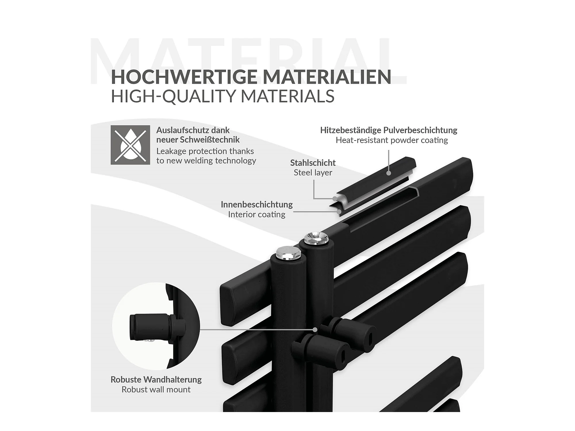 Iron EM Radiateur sèche-serviettes salle de bain en acier noir mat 600x1000 mm