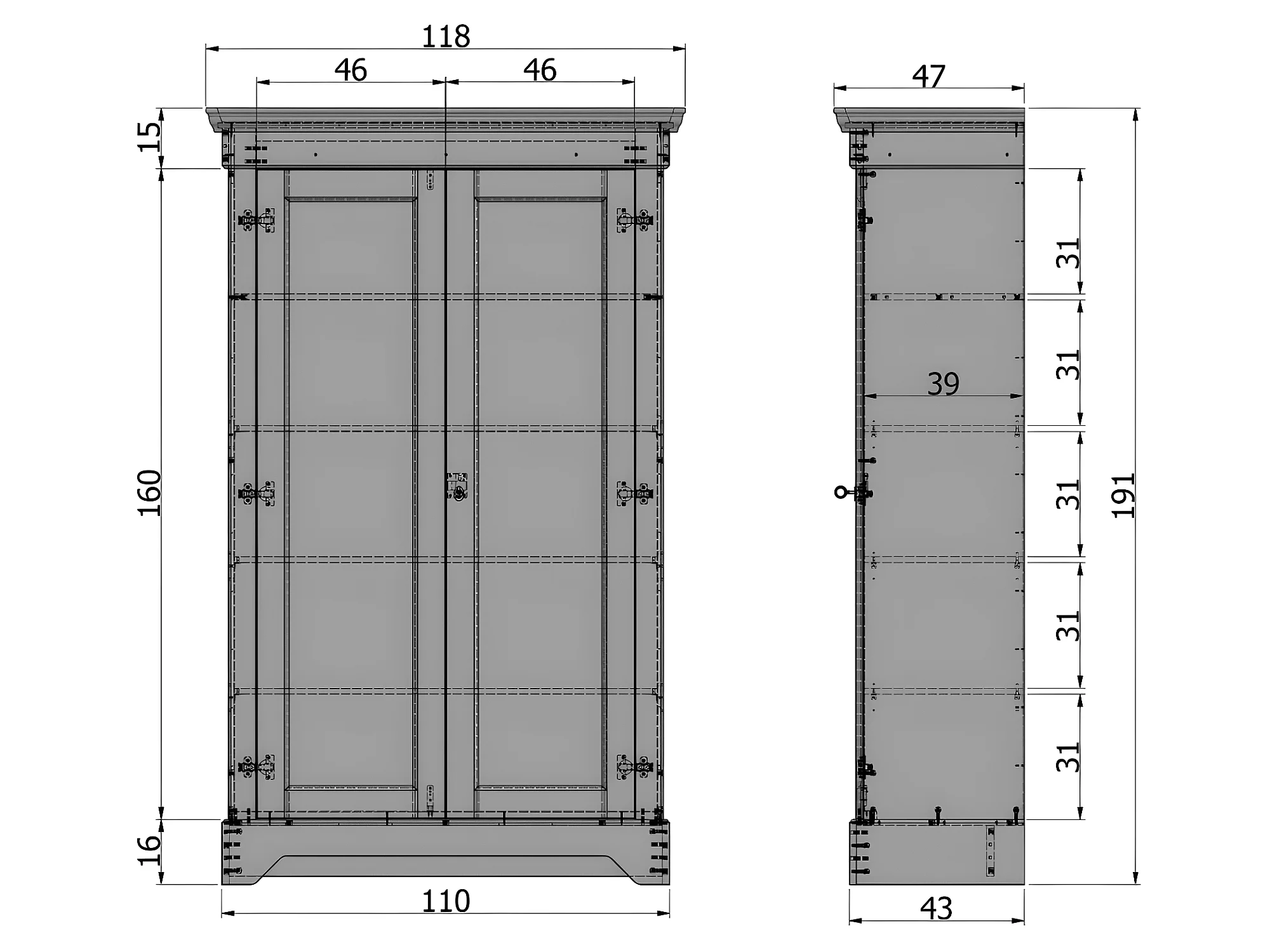Isabel - Armoire classique pin massif - Gris béton
