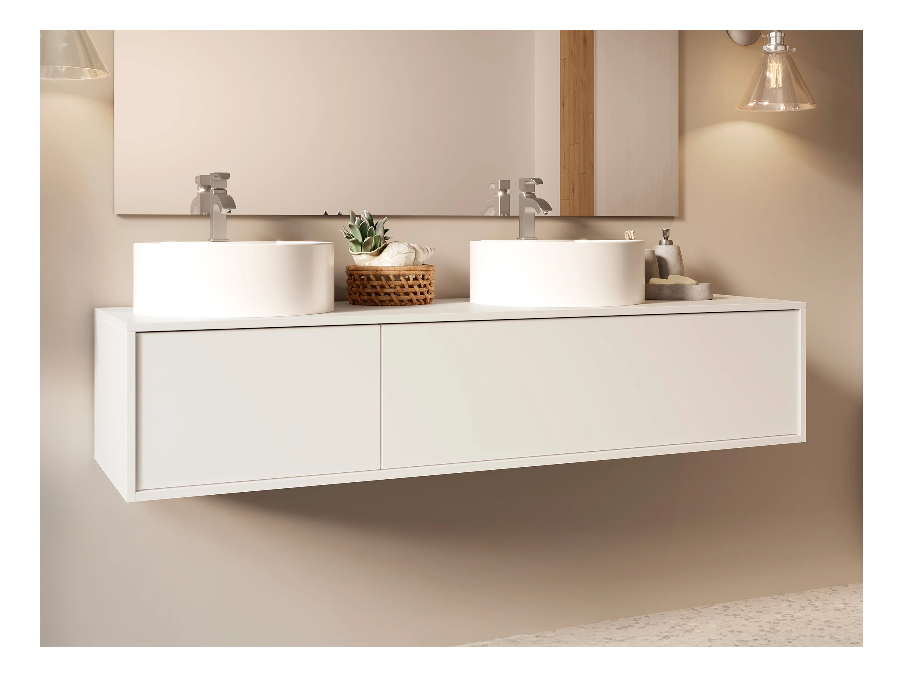 Meuble de salle de bain suspendu blanc avec double vasque à poser ronde - L150 cm - ISAURE II