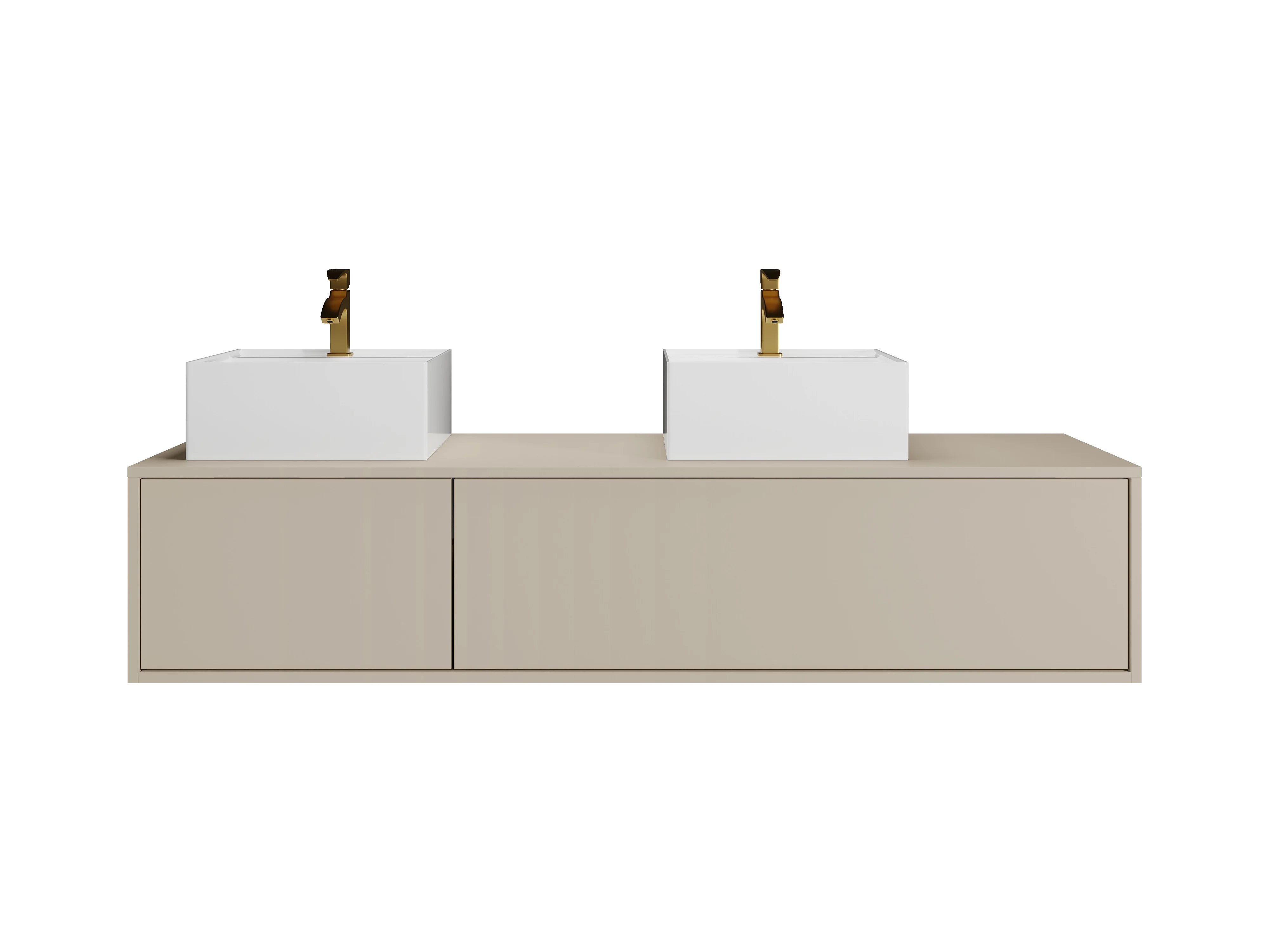 Meuble de salle de bain suspendu coloris beige avec double vasque carrée - L150 cm - ISAURE II