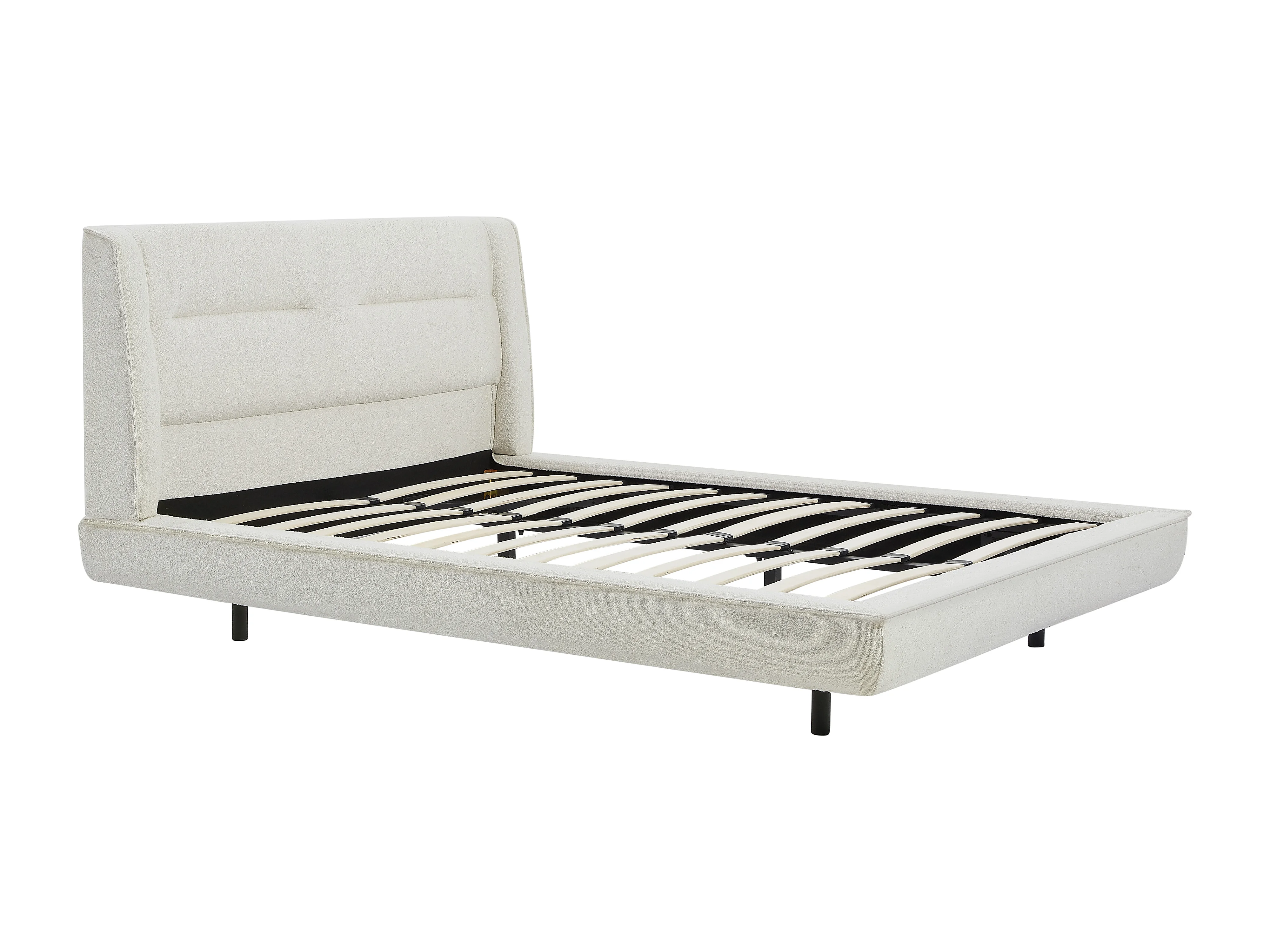 Lit 160 x 200 cm - Tissu bouclette - Beige + Matelas - ISYDE