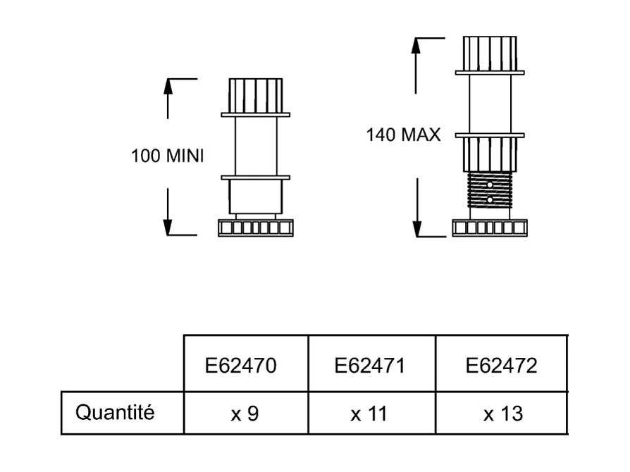 7 pieds réglables pour receveur de douche - hauteur ajustable de 9 à 14 cm, installation facile
