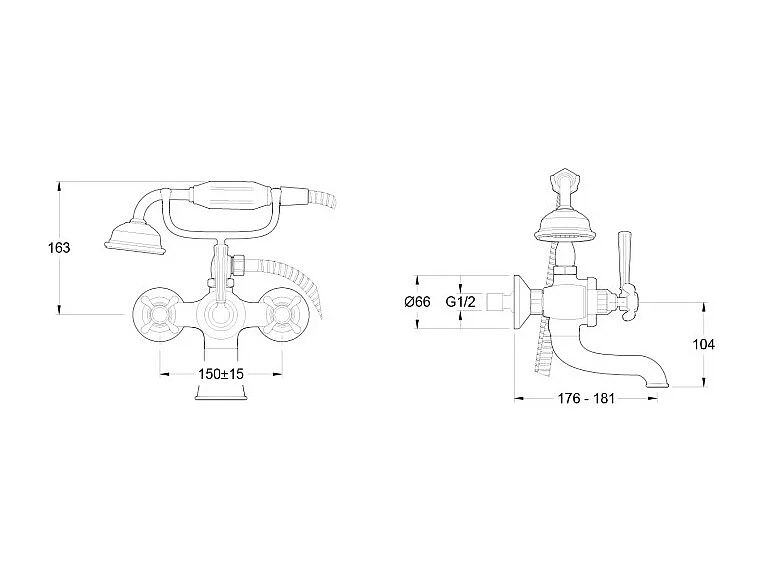 JACOB DELAFON - Mélangeur mural rétro avec douchette Cleo - Or beige