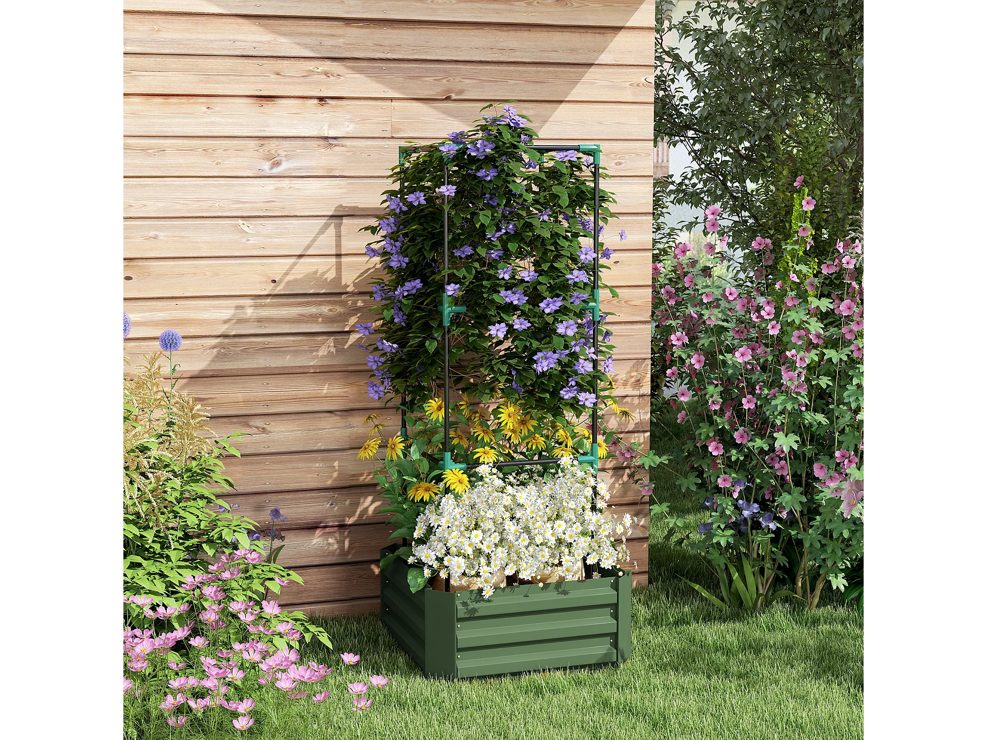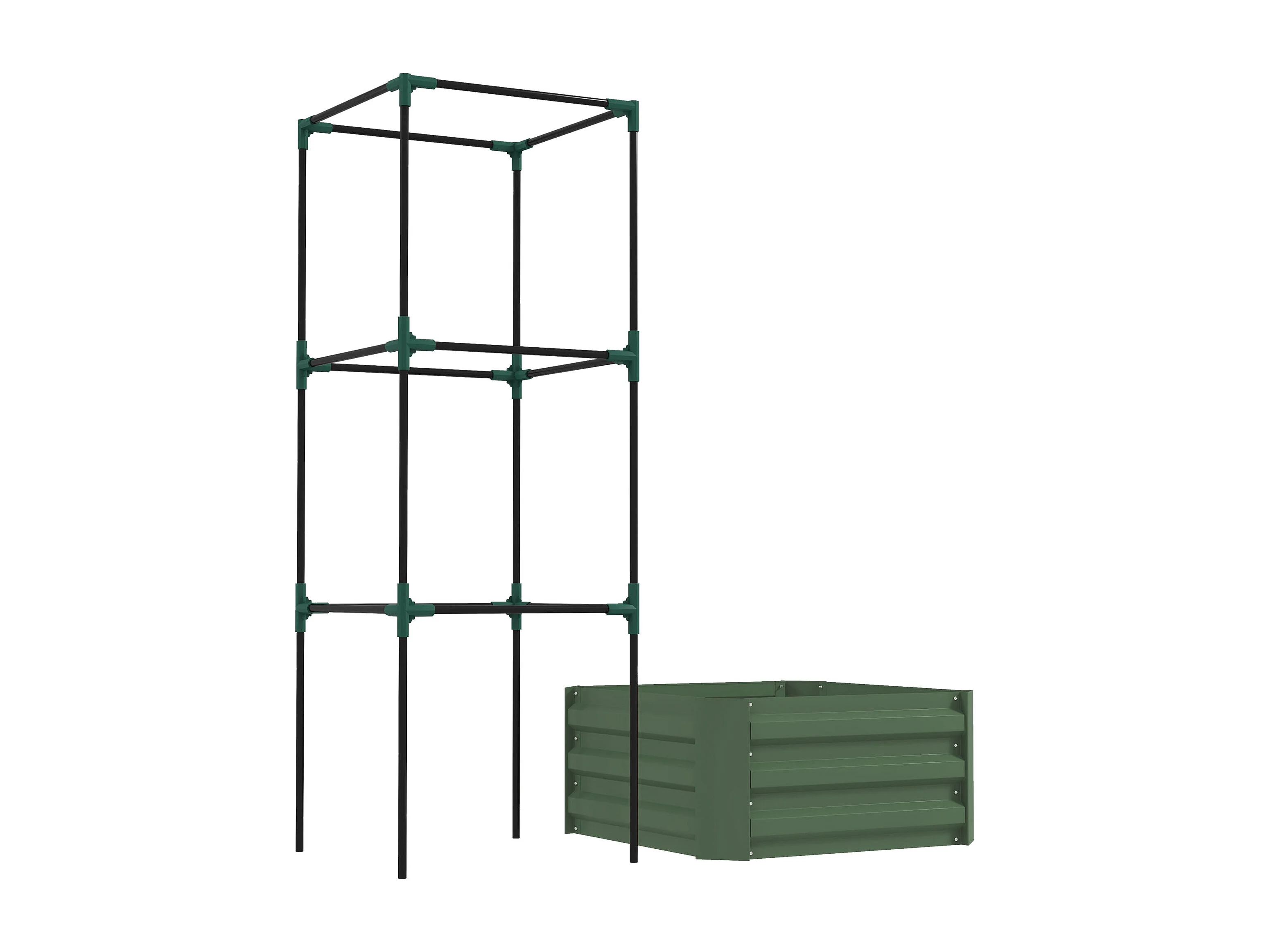 Jardin surélevé avec treillis, en acier galvanisé, vert (61x61x140 cm)