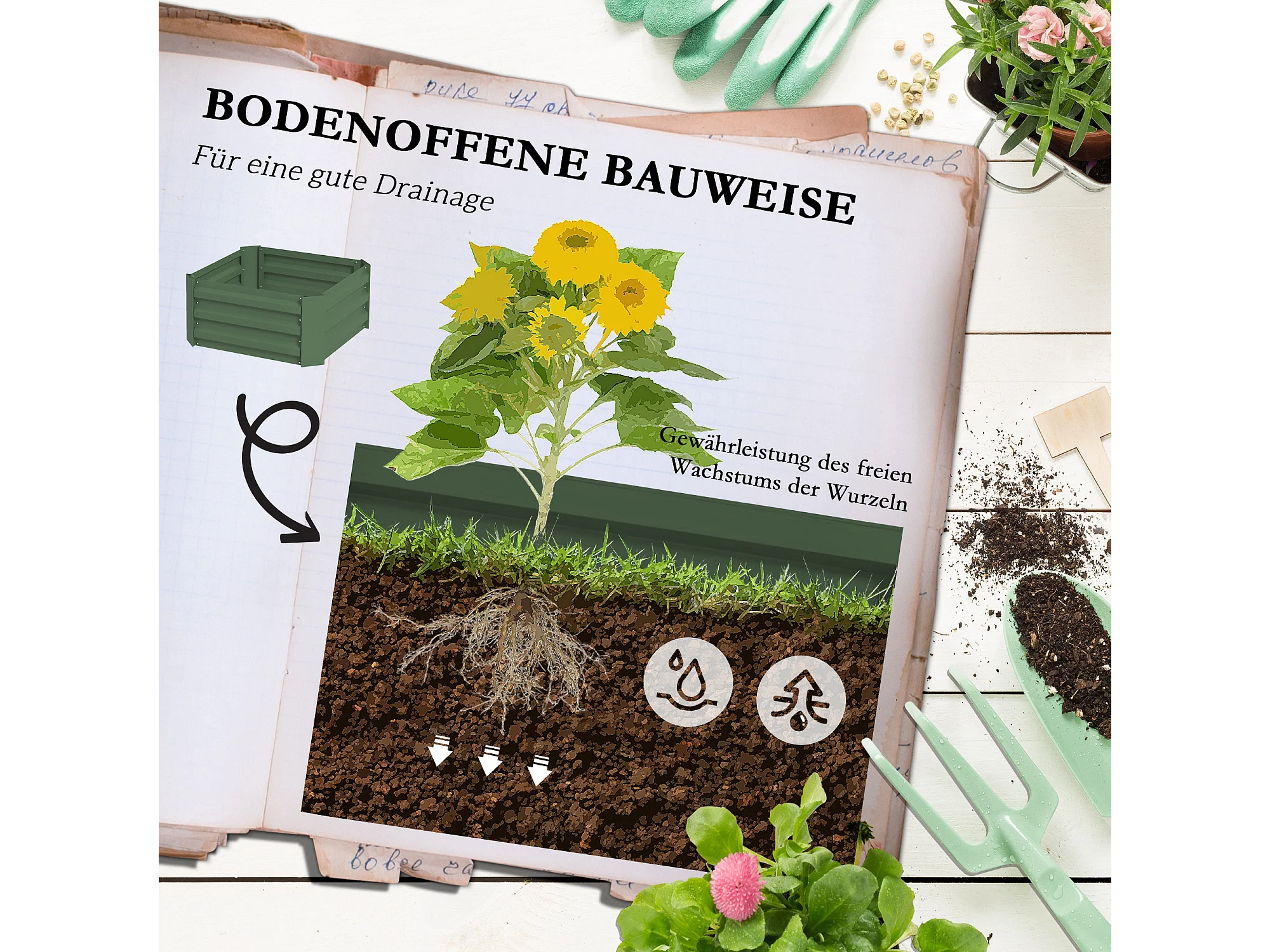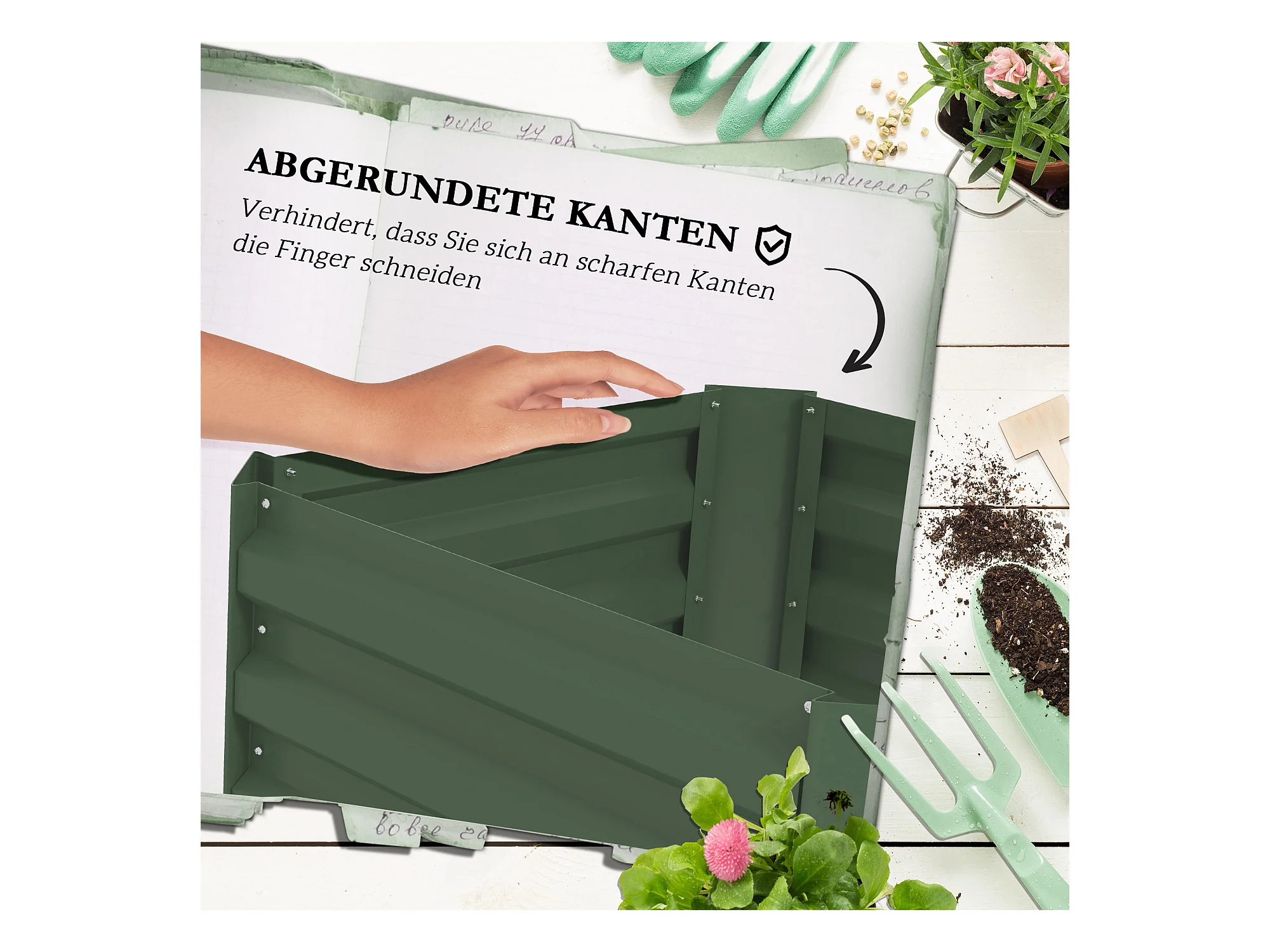 Jardinier surélevé en acier, avec gants, vert, pour légumes et fleurs (125x47x40 cm)