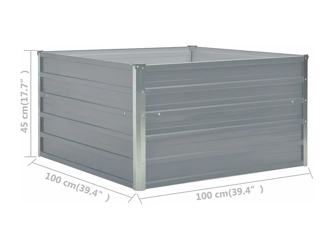 Jardinière 100 x 100 x 45 cm Acier galvanisé Gris